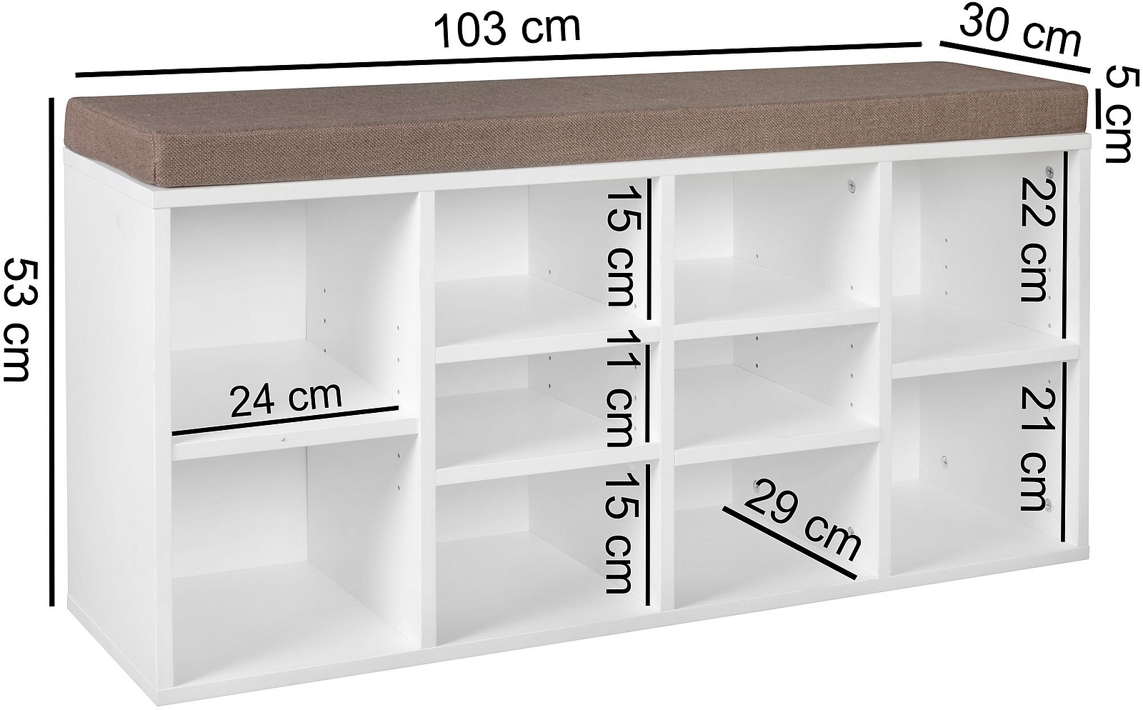 - BESONDERHEITEN ✔ Extra viel Stauraum durch die vielen Regalböden // Komfortable Sitzfläche durch gepolsterte Auflage // Regalböden sind je nach Bedarf individuell einsetzbar