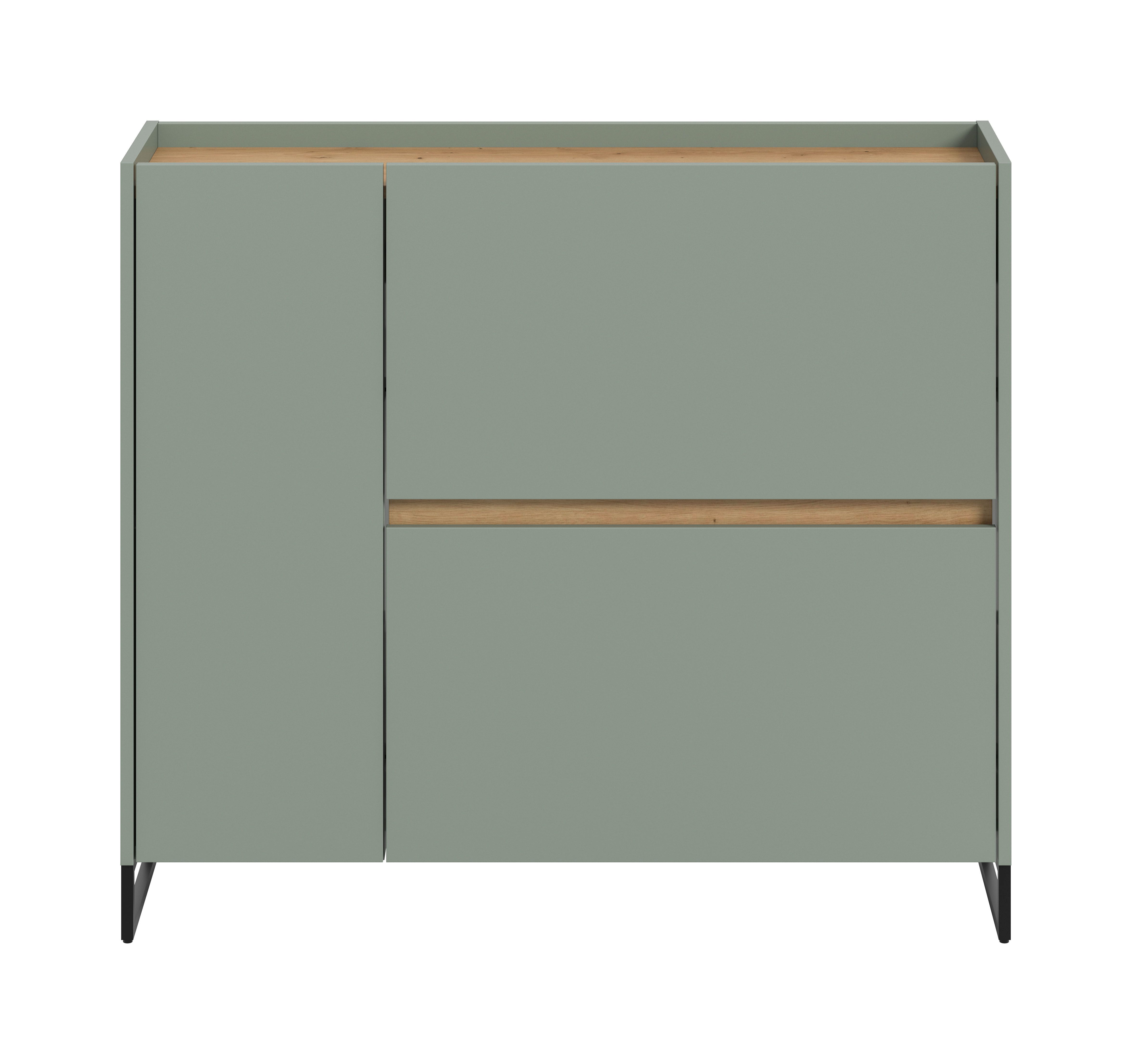 Diese Schuhkommode (110x94x32 cm) in Salbei und Artisan Oak Nachbildung bietet 1 Tür, 1 höhenverstellbaren Einlegeboden, 2 Fächer und 2 Schuhwalzen für ca. 12 Paar Schuhe. FSC®-zertifizierter Holzwerkstoff garantiert Nachhaltigkeit. Pflegeleichte Oberfläche und schnelle Montage sorgen für Komfort. Perfekt erweiterbar durch weitere Artikel der Serie. Für ein organisiertes und stilvolles Zuhause.