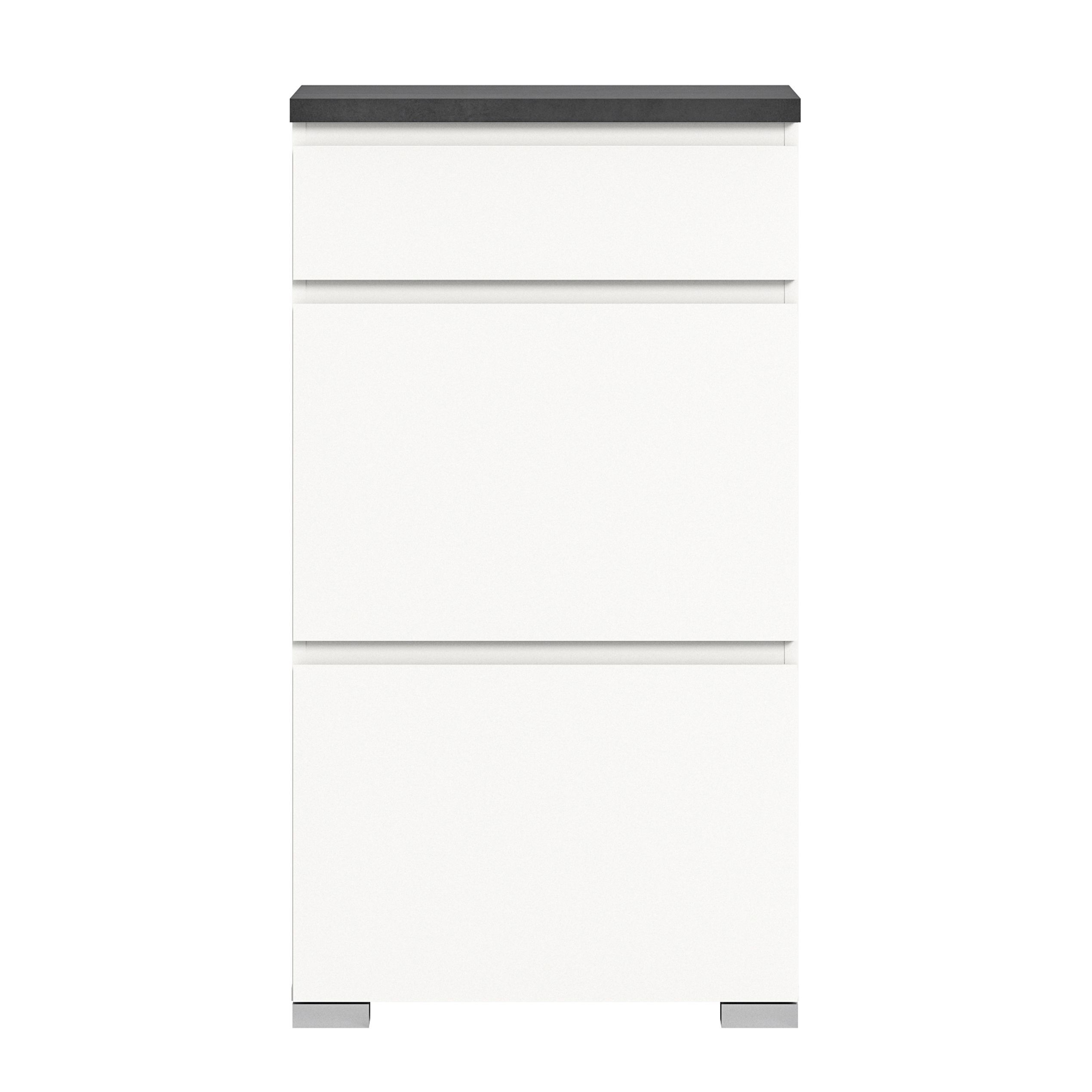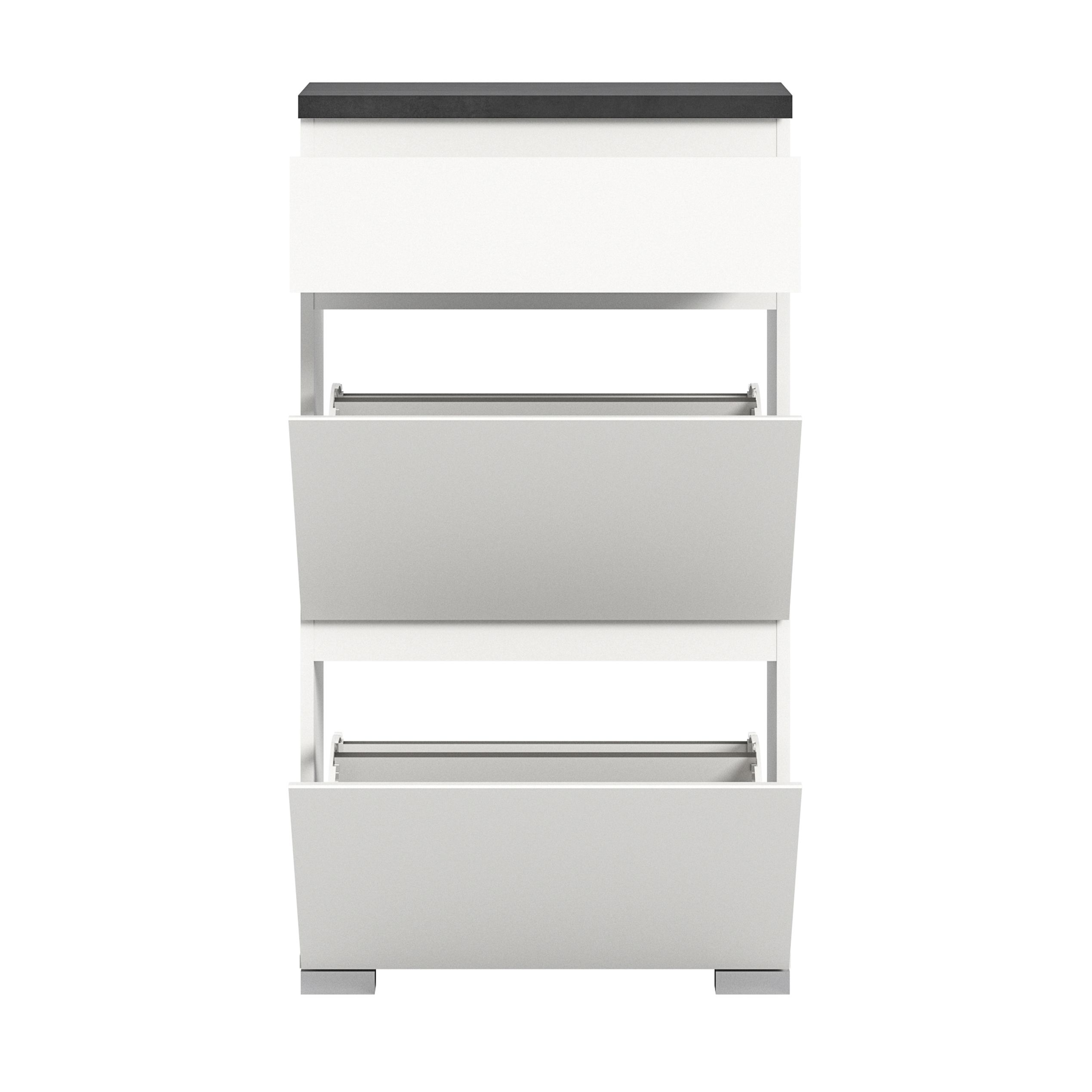 In unserer HADERO Serie präsentieren wir einen kombinierbaren Schuhschrank in stilvollem und zeitlosem Weiß mit einem Oberboden in Industrial Grau, der deinem Eingangsbereich einen modernen Touch verleiht. Mit seiner vielseitigen Gestaltung kannst du ihn nach deinen Bedürfnissen anpassen und so deine Schuhsammlung stilvoll organisieren. Entdecke die perfekte Symbiose aus Funktionalität und Design mit diesem flexiblen Schuhschrank.