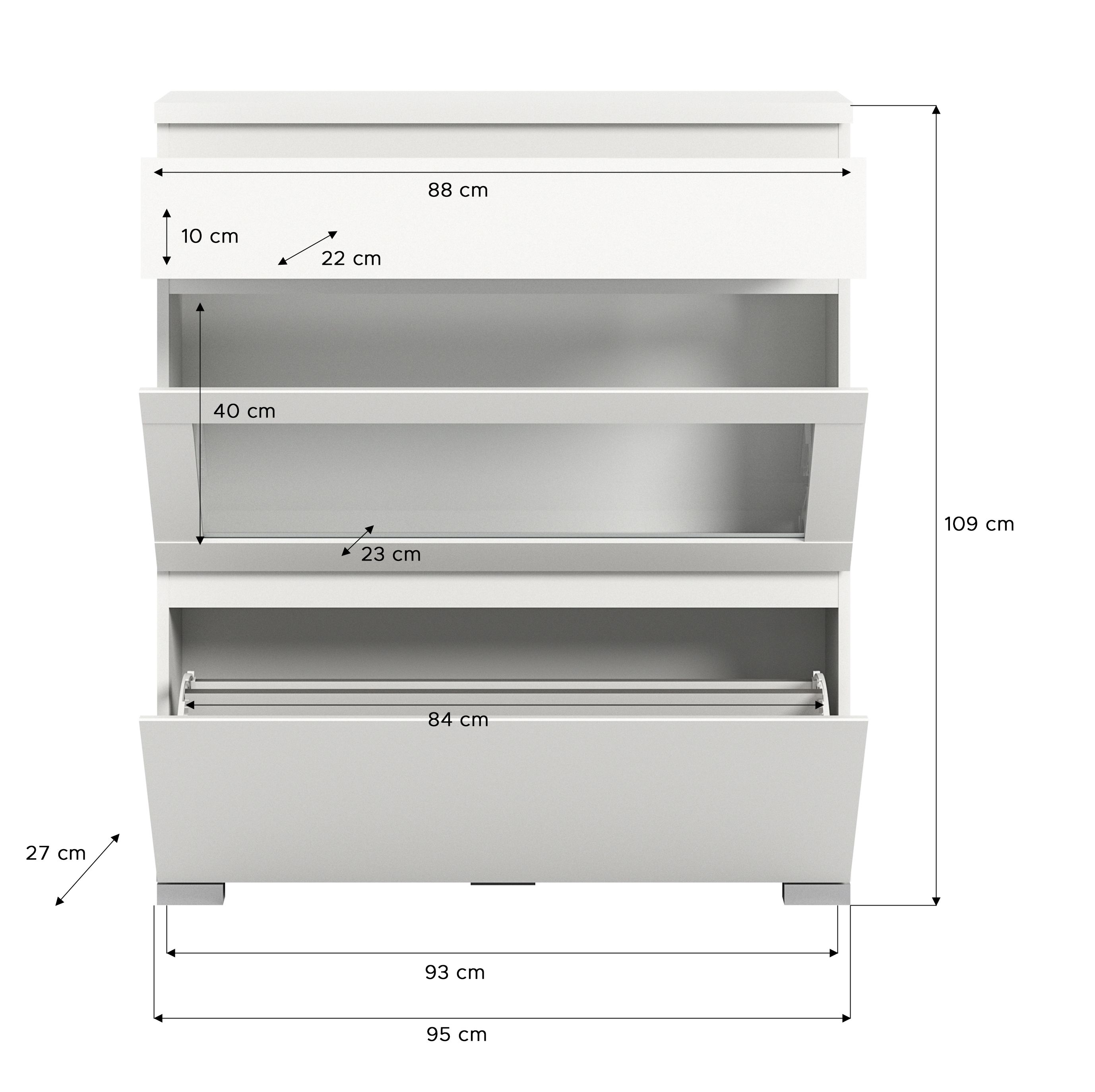 - Qualität/Pflege: Hergestellt aus hochwertigen Materialien gewährleistet der Schuhschrank eine hohe Qualität und Langlebigkeit. Die pflegeleichte weiße Nachbildung lässt sich leicht reinigen und behält auch bei regelmäßiger Nutzung ihr attraktives Aussehen.