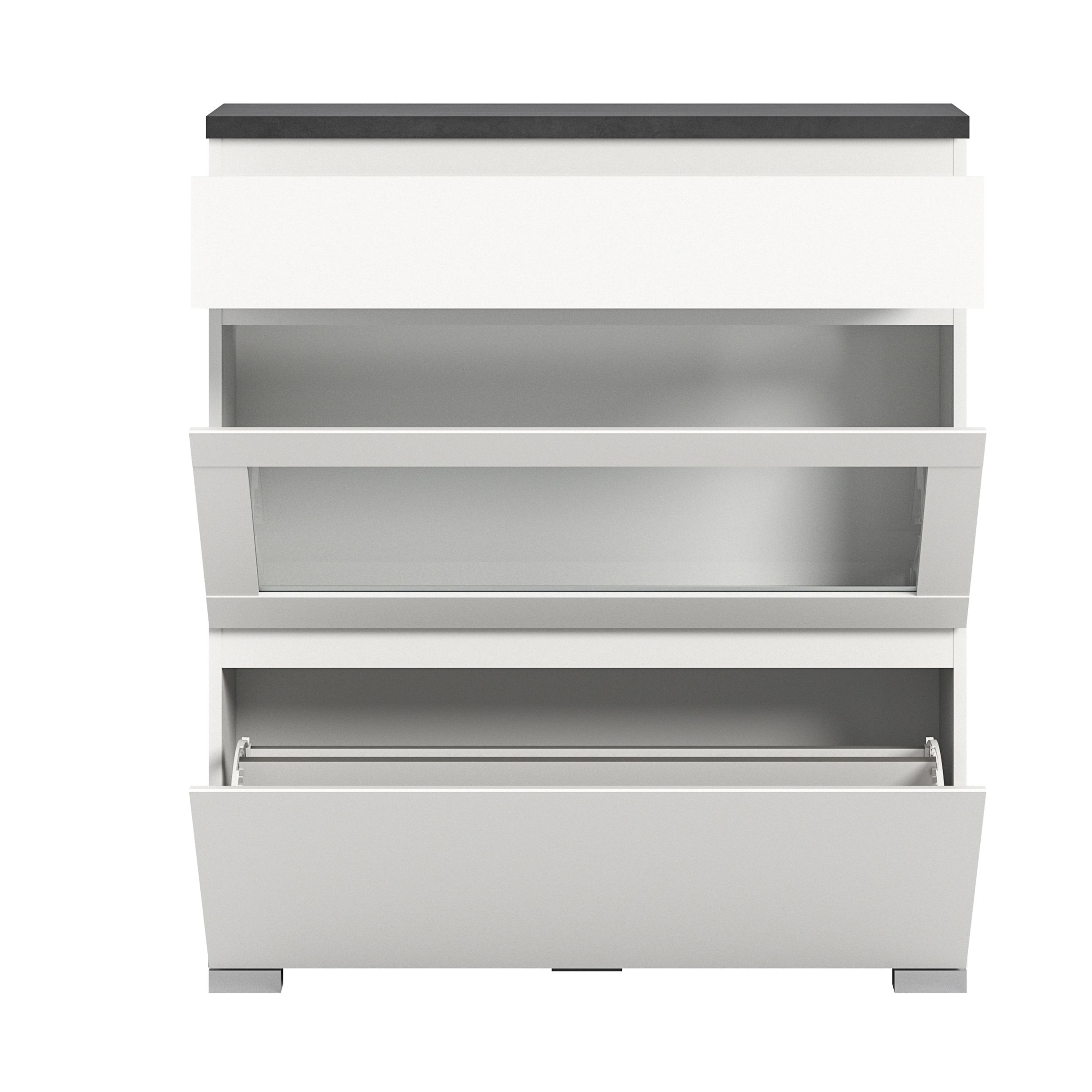 In unserer HADERO Serie präsentieren wir einen kombinierbaren Schuhschrank in stilvollem und zeitlosem Weiß mit einem Oberboden in Industrial Grau, der deinem Eingangsbereich einen modernen Touch verleiht. Mit seiner vielseitigen Gestaltung kannst du ihn nach deinen Bedürfnissen anpassen und so deine Schuhsammlung stilvoll organisieren. Entdecke die perfekte Symbiose aus Funktionalität und Design mit diesem flexiblen Schuhschrank.