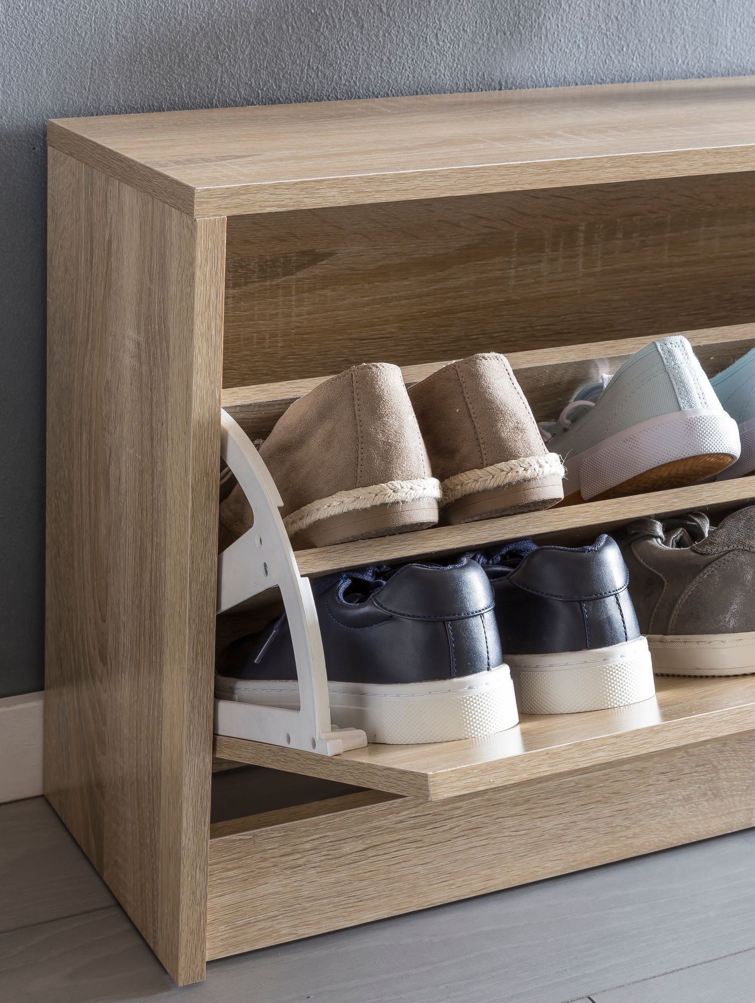 - ALLTAGSHELFER ✔ Man setzt sich gerne hin, um gemütlich in die Schuhe zu schlüpfen oder diese wieder auszuziehen. Damit die Schuhe aber nicht im Flur herumstehen, können Sie diese, dank des integrierten Kippers, schnell in dieser schmalen Sitzbank verschwinden lassen. Damit ist dieses Multitalent eine echt Hilfe für den Alltag!