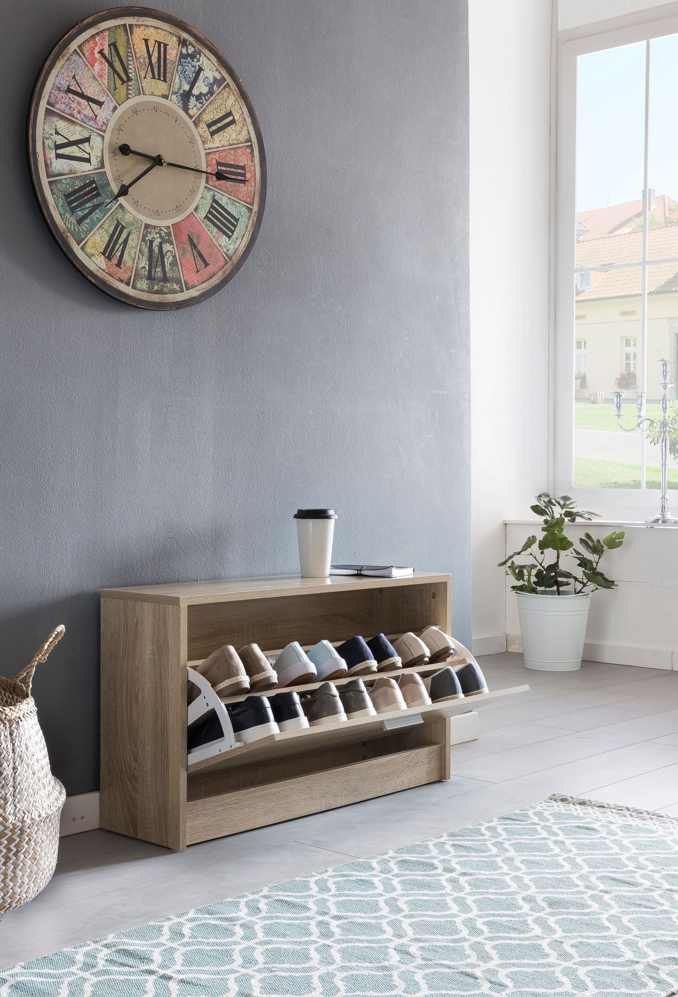 - PLATZ ✔ Durch das Kippfach, das in zwei Ebenen unterteilt ist, können Sie bis zu 8 Paar Schuhe (Ausgehend von Schuhgröße 41) in diesem Schuhregal verstauen. Die Höhe des Einlegebodens kann auf 2 verschiedenen Positionen festgelegt werden.