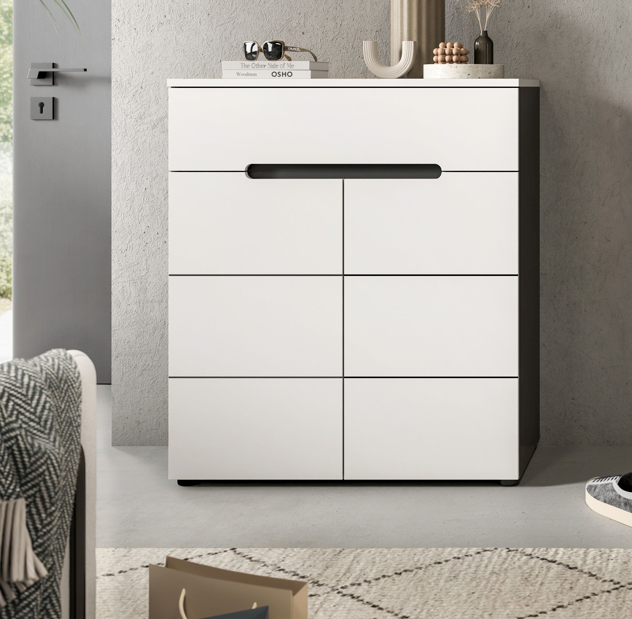 - Design/Stil: Schuhkommode mit zeitgemäßem und elegantem Design in Basalt grau NB und Weiß, das sich nahtlos in moderne Flure und Dielen einfügt.