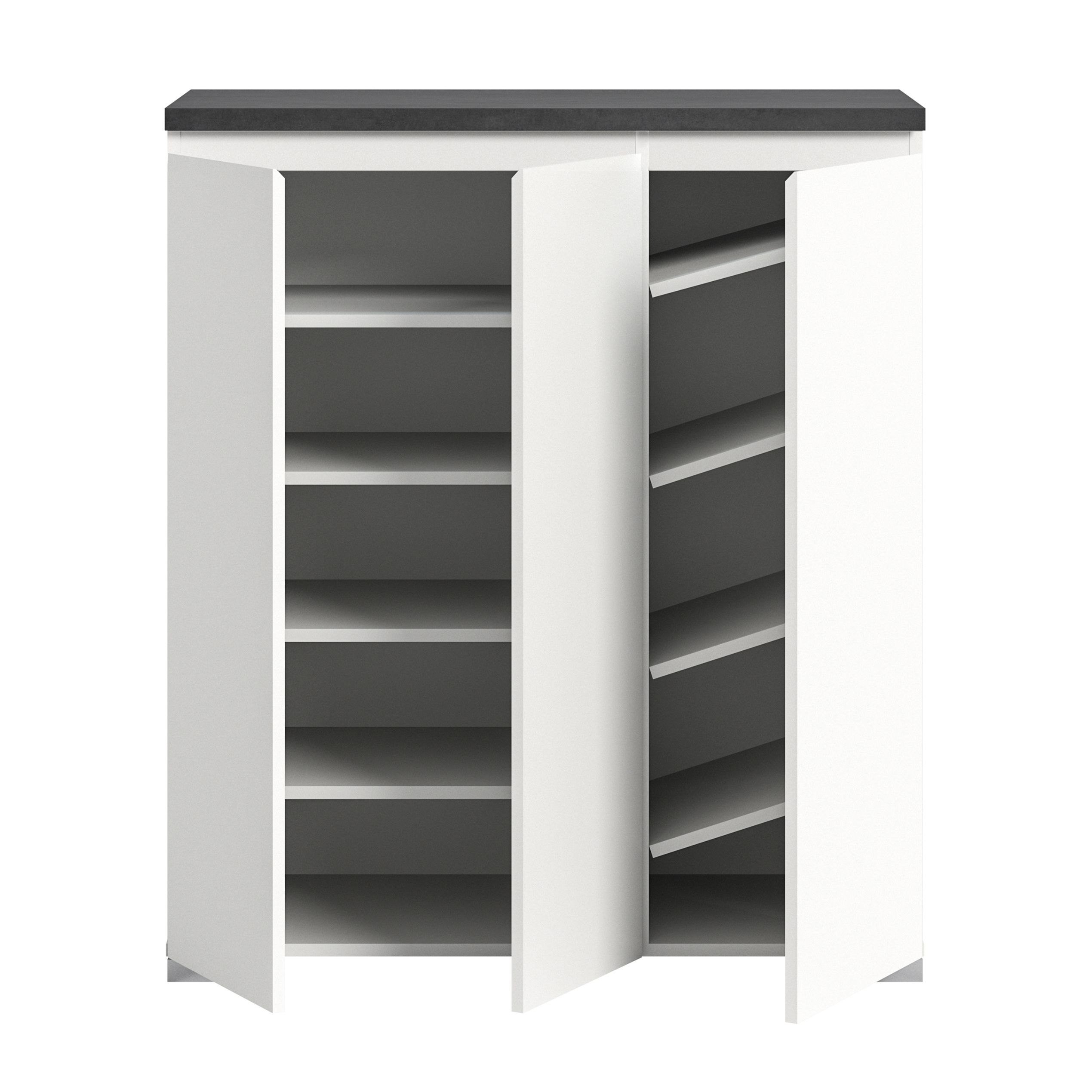 In unserer HADERO Serie präsentieren wir einen kombinierbaren Schuhschrank in stilvollem und zeitlosem Weiß mit einem grauen Oberboden, der deinem Eingangsbereich einen modernen Touch verleiht. Mit seiner vielseitigen Gestaltung kannst du ihn nach deinen Bedürfnissen anpassen und so deine Schuhsammlung stilvoll organisieren. Entdecke die perfekte Symbiose aus Funktionalität und Design mit diesem flexiblen Schuhschrank.