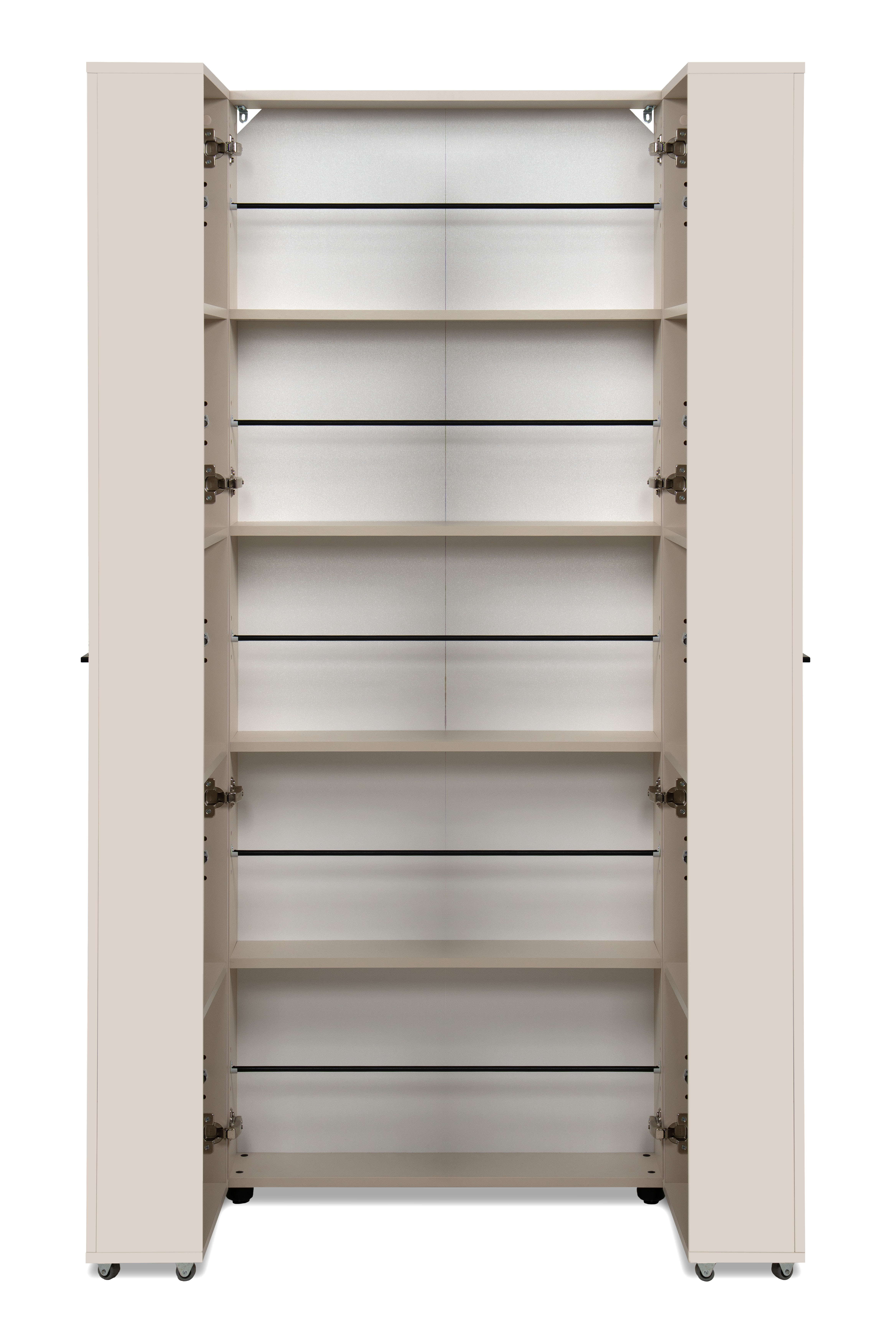 2 Türen mit jeweils 4 Einlegeböden und 5 Kunststoffstangen zur Schuhfixierung