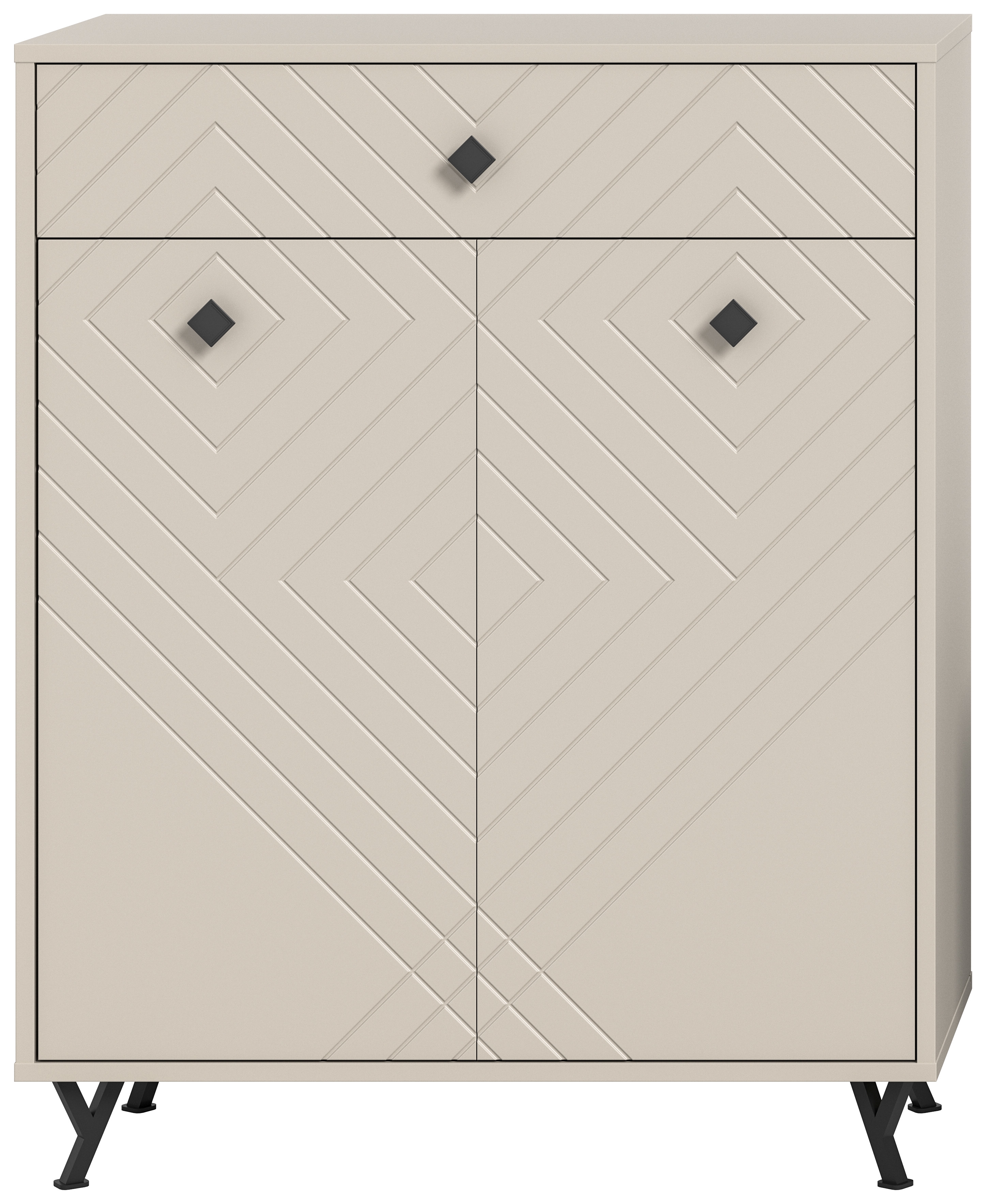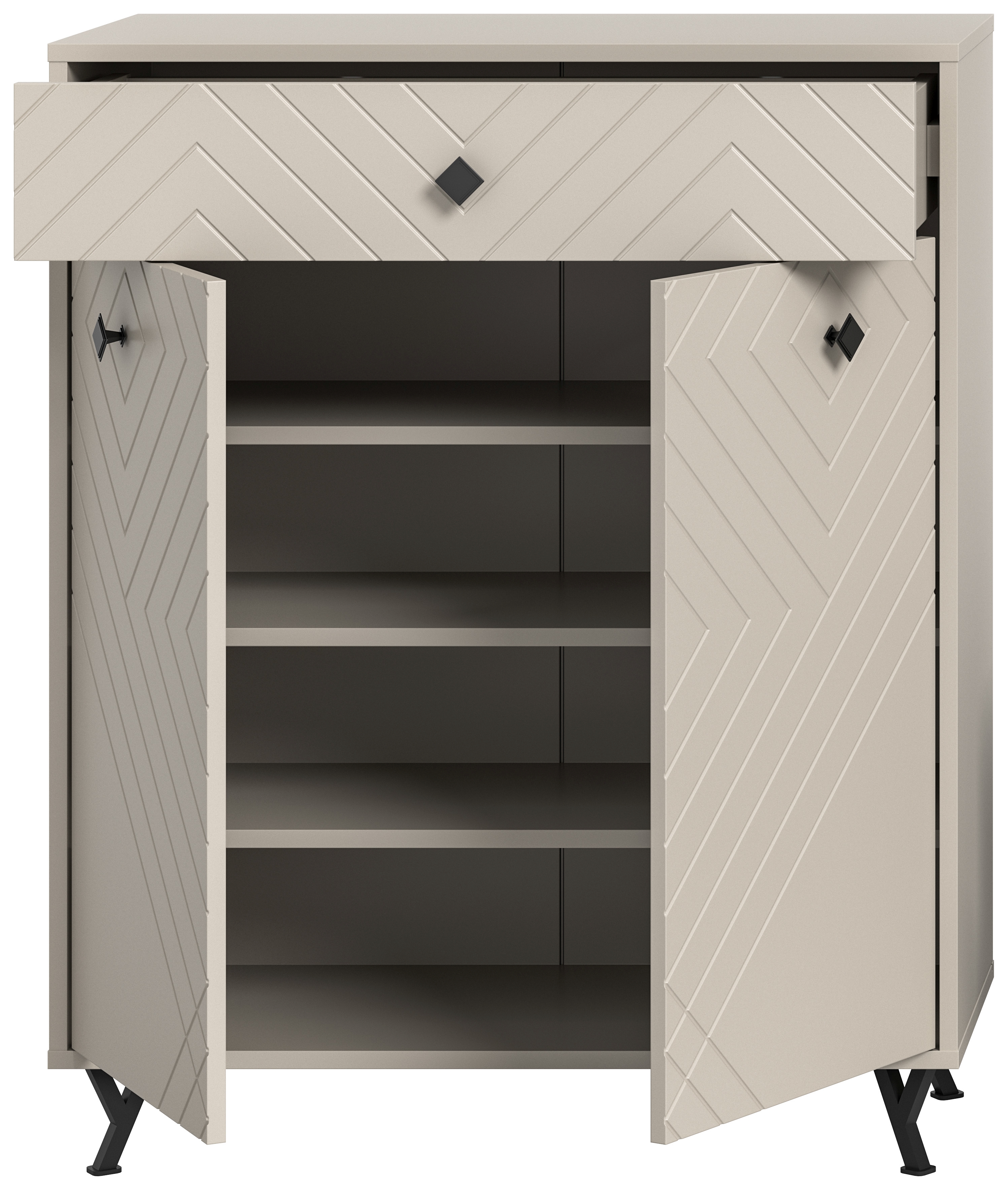 - Design/Stil: Die Schuhkommode besticht durch ihr schlichtes und modernes Design mit einer sandbeigen Melamin-Oberfläche und einem matt tiefgezogenen Finish. Die klaren Linien und die dezente Farbgebung verleihen dem Möbelstück eine zeitgemäße Ästhetik, die sich nahtlos in verschiedene Einrichtungsstile einfügt.