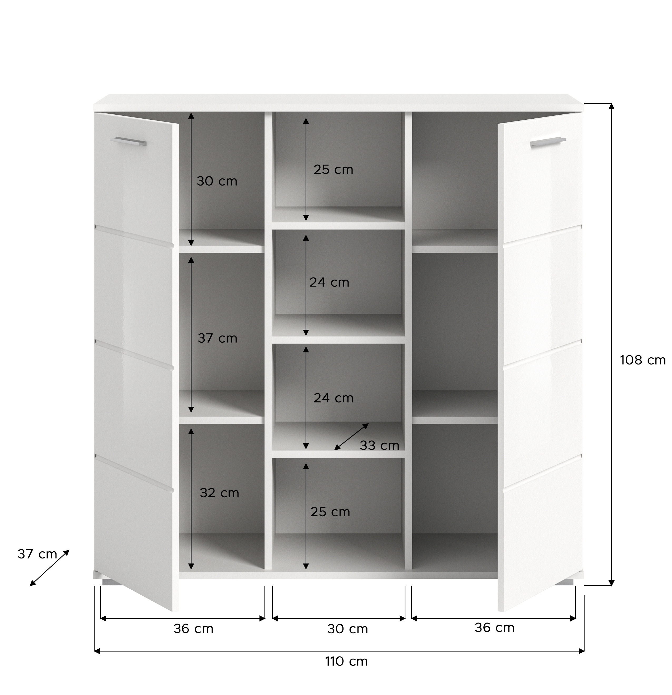 Für eine praktische und ästhetische Einrichtung in Arbeitszimmer, Badezimmer, Diele, Esszimmer und Flur bietet unsere Kommode in Weiß Nachbildung und Weiß Hochglanz die perfekte Lösung. Mit ihrem vielseitigen Design und großzügigem Stauraum ist sie ein unverzichtbares Möbelstück für die Organisation Ihres Zuhauses. Entdecken Sie jetzt diese stilvolle Kommode und verleihen Sie jedem Raum einen Hauch von Eleganz und Funktionalität.