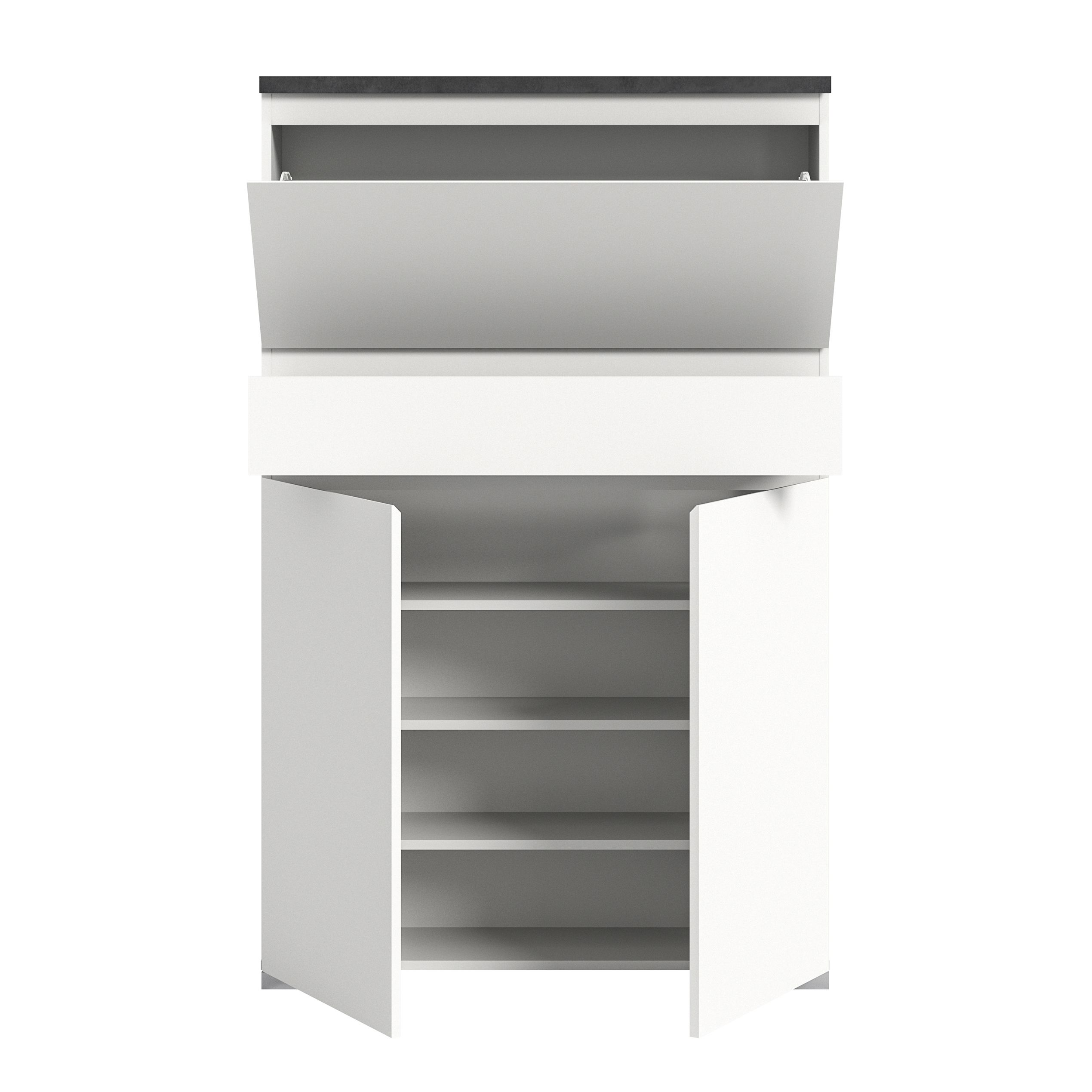 In unserer HADERO Serie präsentieren wir einen kombinierbaren Schuhschrank in stilvollem und zeitlosem Weiß mit einem grauen Oberboden, der deinem Eingangsbereich einen modernen Touch verleiht. Mit seiner vielseitigen Gestaltung kannst du ihn nach deinen Bedürfnissen anpassen und so deine Schuhsammlung stilvoll organisieren. Entdecke die perfekte Symbiose aus Funktionalität und Design mit diesem flexiblen Schuhschrank.