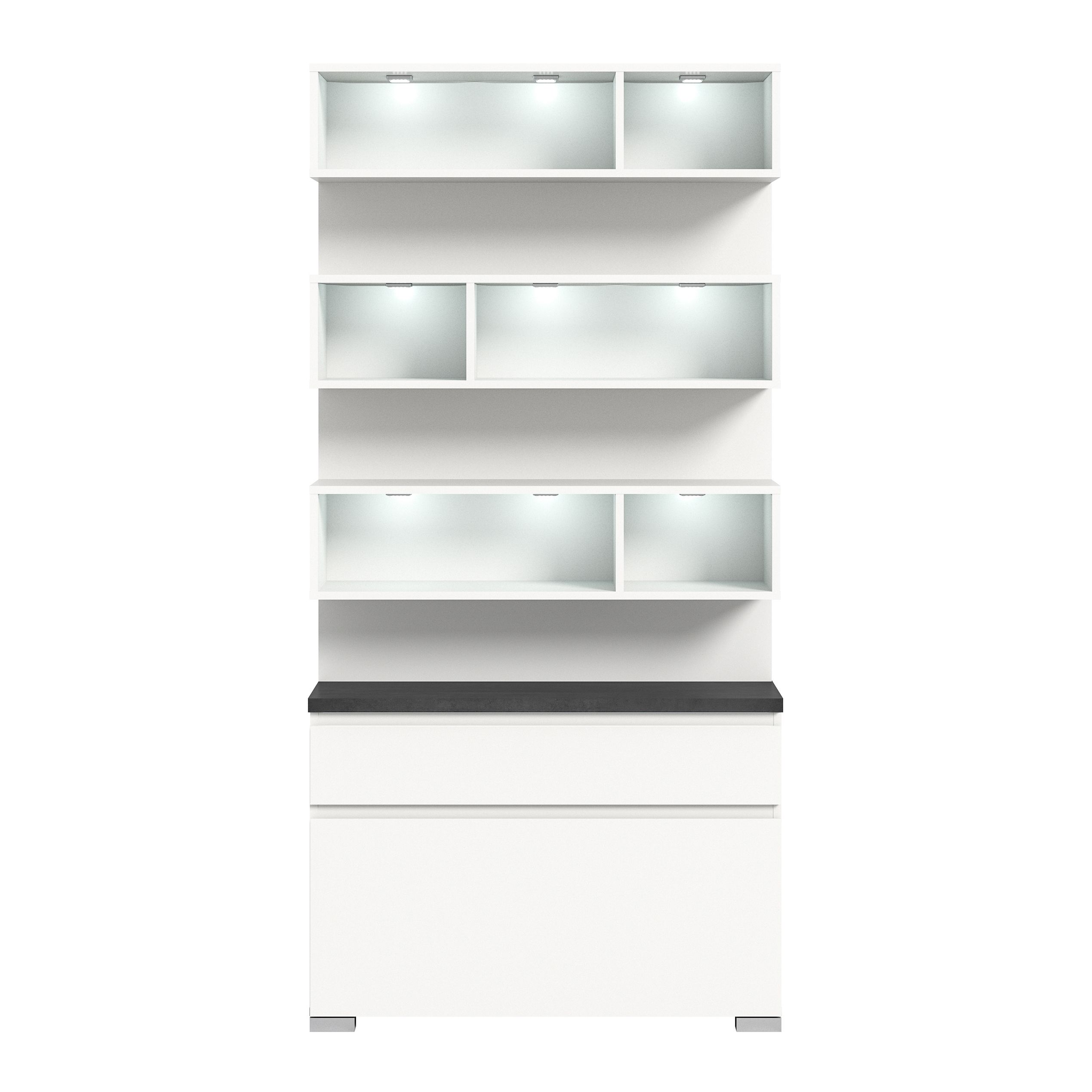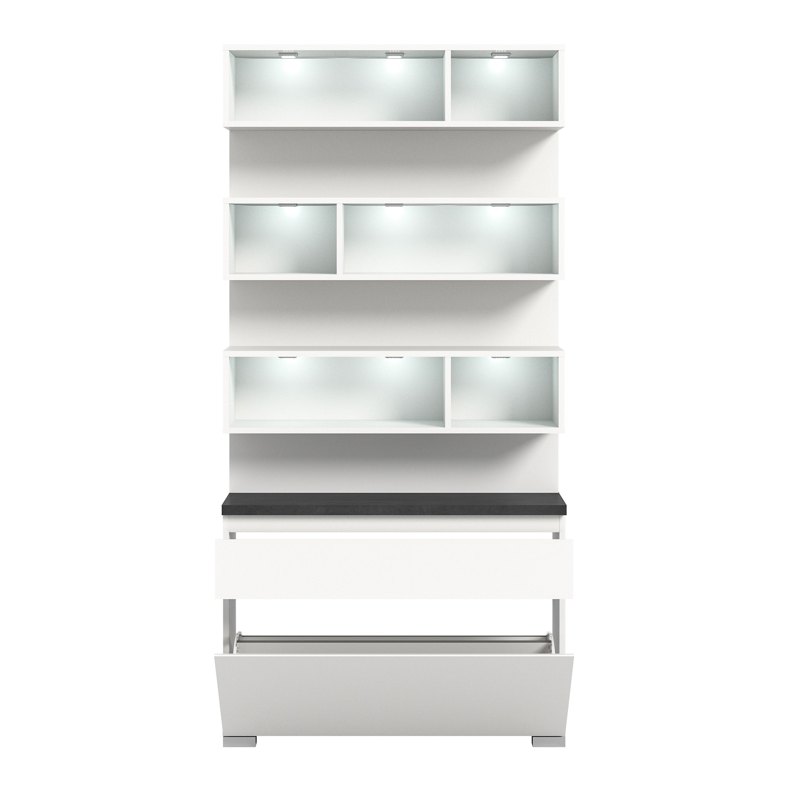 | Ausstattung Schränke: | Schublade(n), offene Fächer | ||