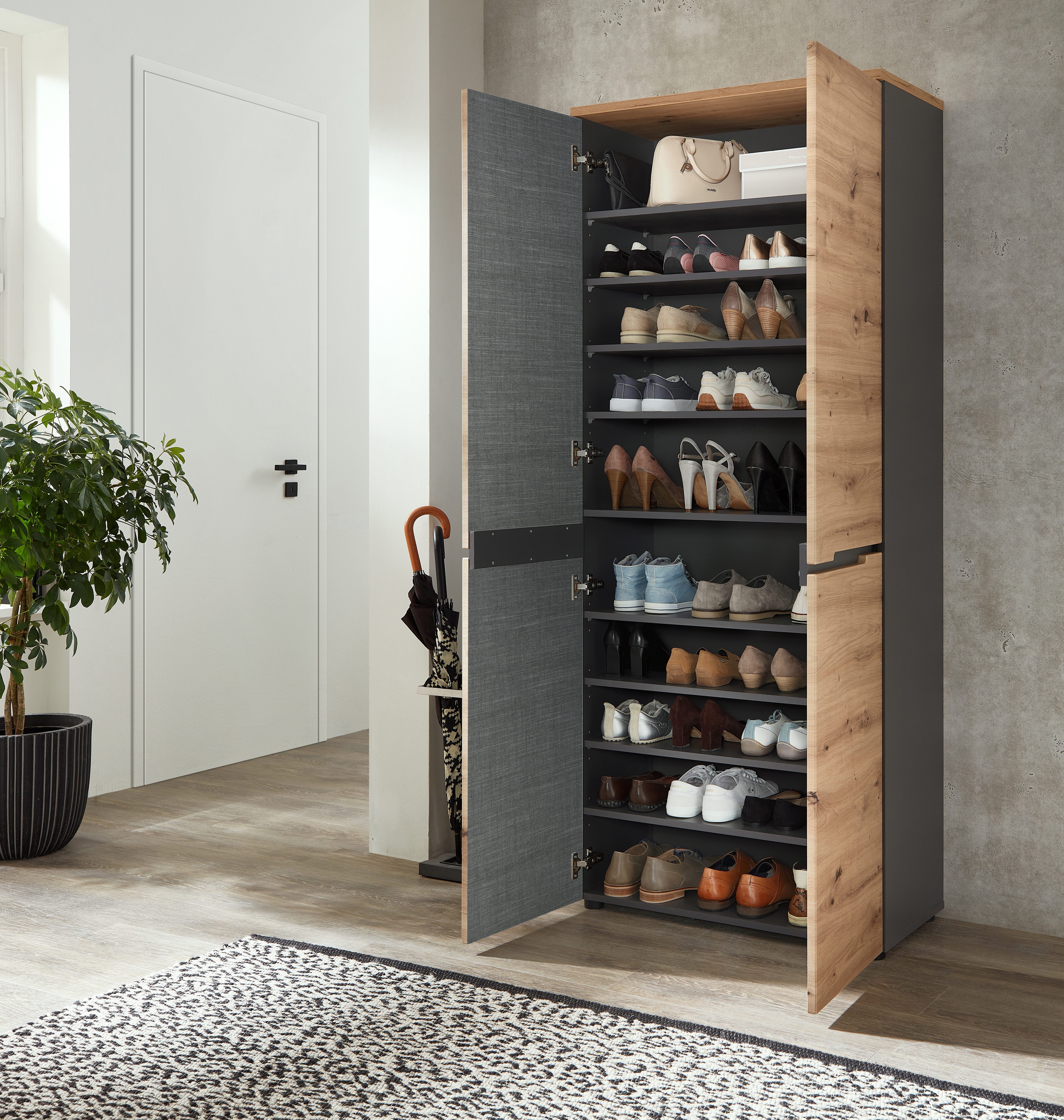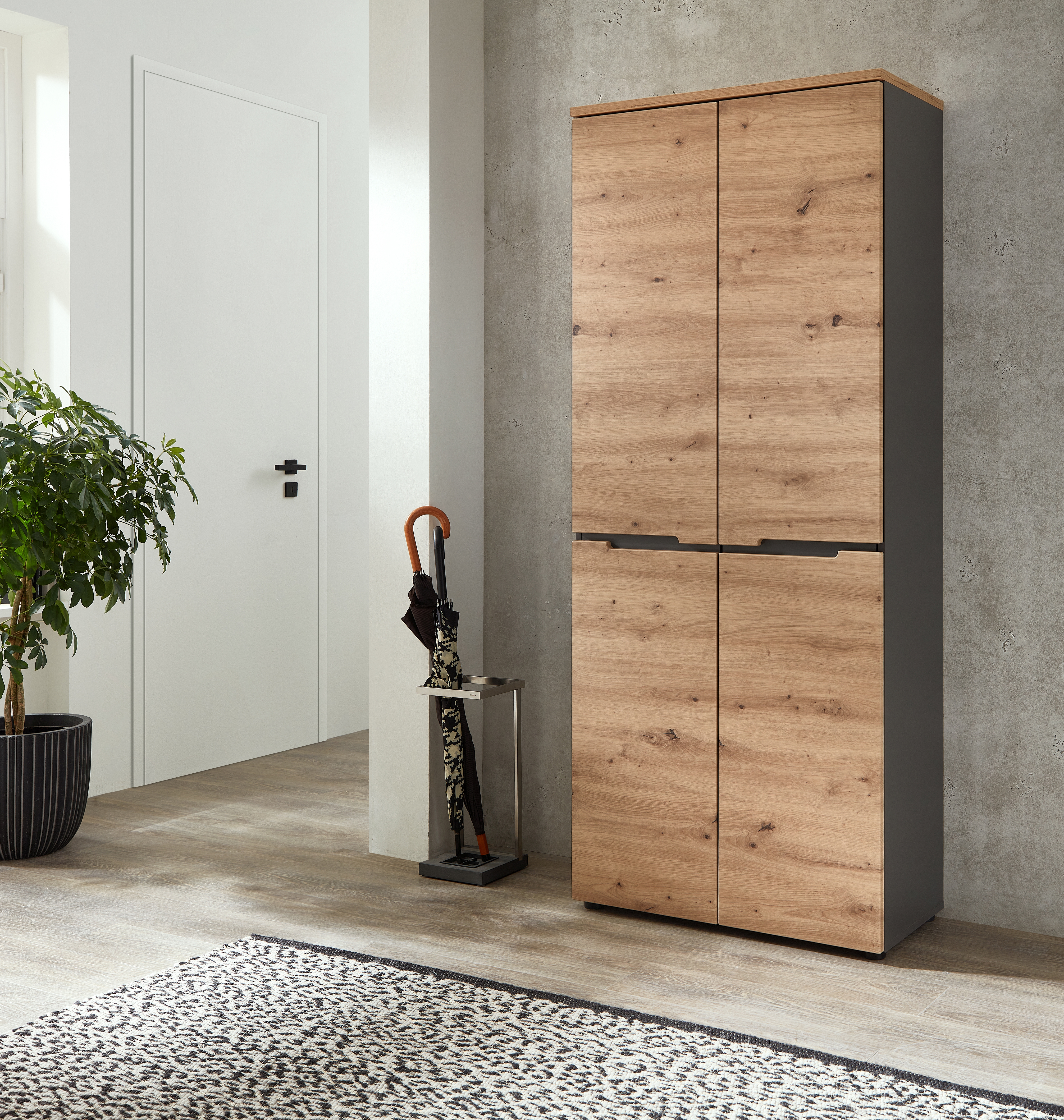 Front: Artisan Eiche MDF Holznachbildung kombiniert mit Absetzungen in Graphit