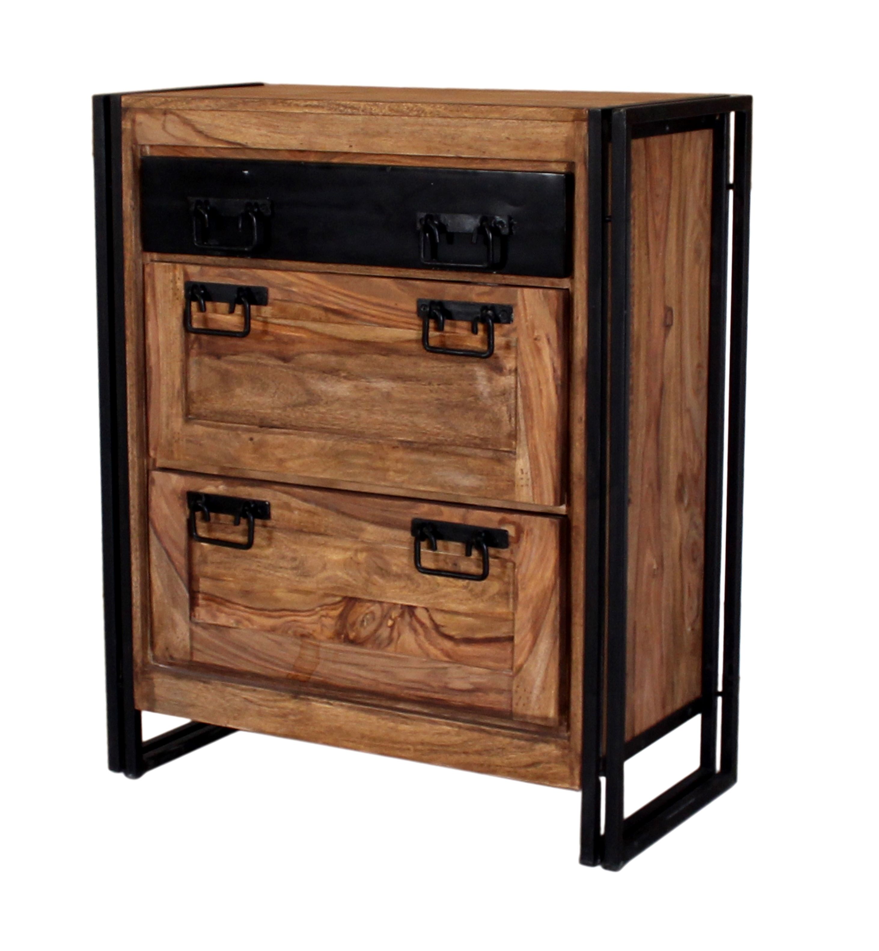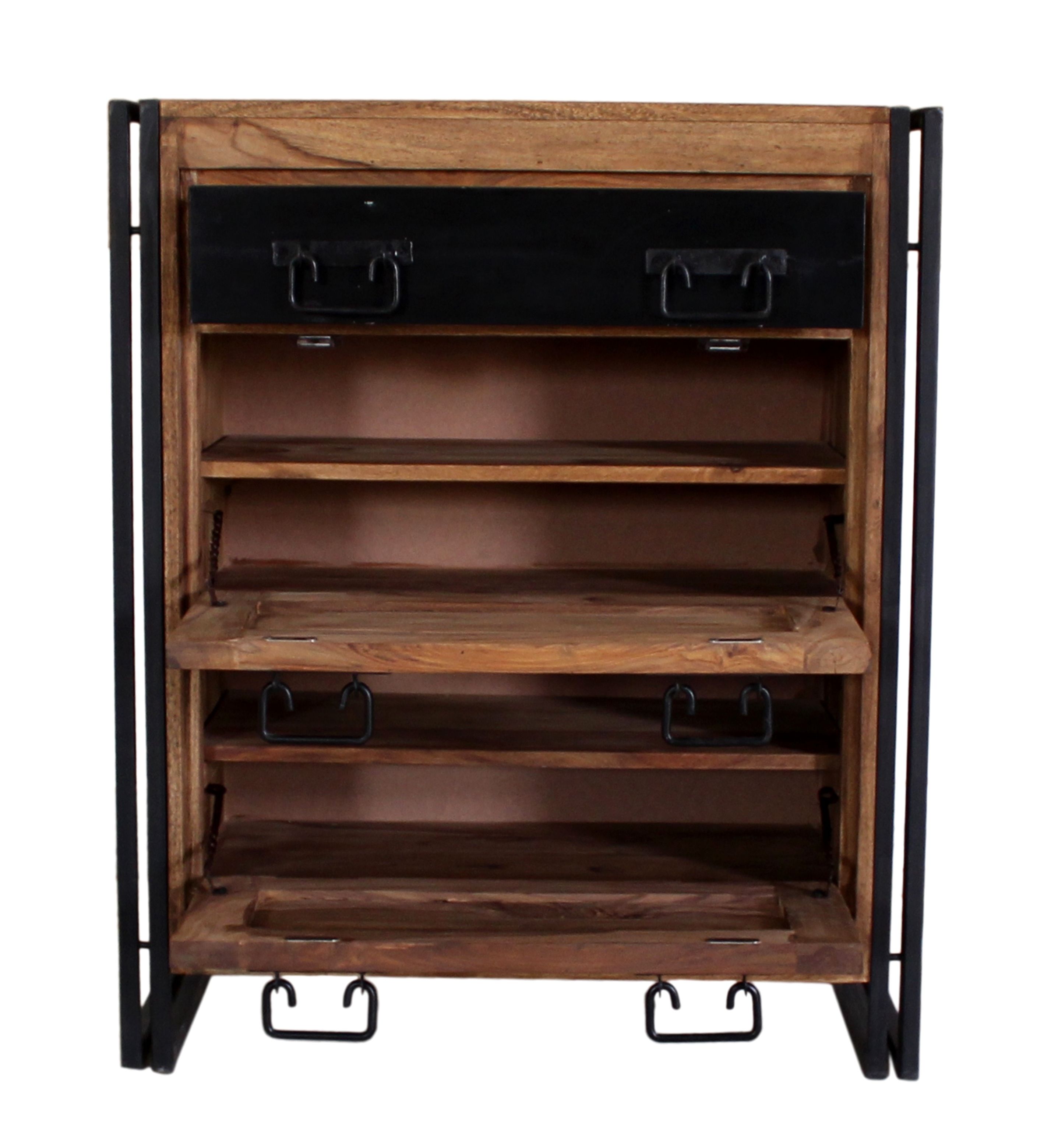 Metall und Holz sind aufwendig auf "used look" getrimmt. Handwerkliche Verarbeitung gibt diesem Möbelstück den individuellen Charakter.