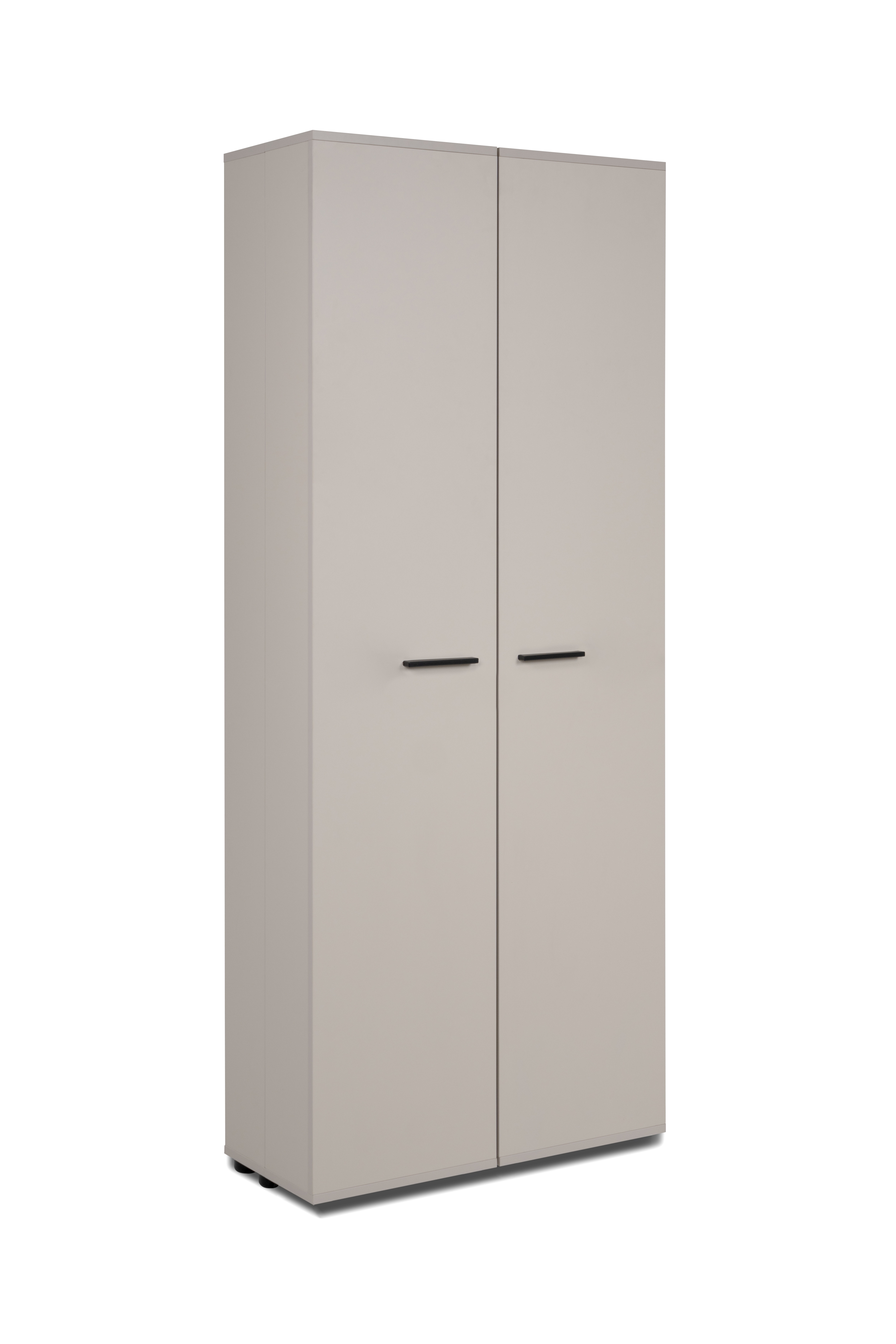 2 Türen mit Rollen und jeweils 4 Einlegeböden und 5 Kunststoffstangen zur Schuhfixierung