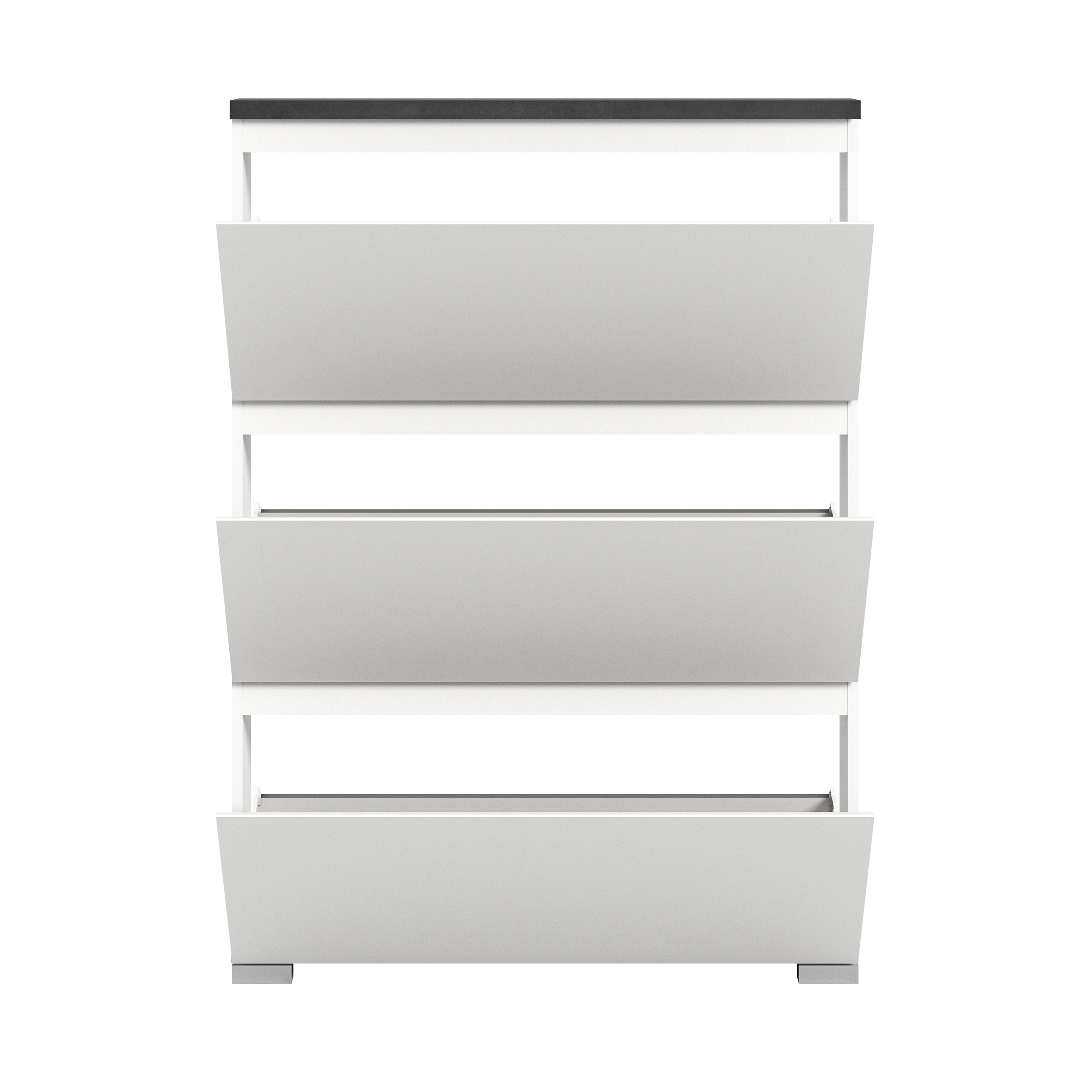- Design/Stil: Die Schuhschrankkombination in Form von Schuhkippern in weiß und grau besticht durch ein modernes und schlichtes Design, das sich nahtlos in verschiedene Einrichtungsstile einfügt und dem Flur oder der Diele eine ordentliche und aufgeräumte Optik verleiht.