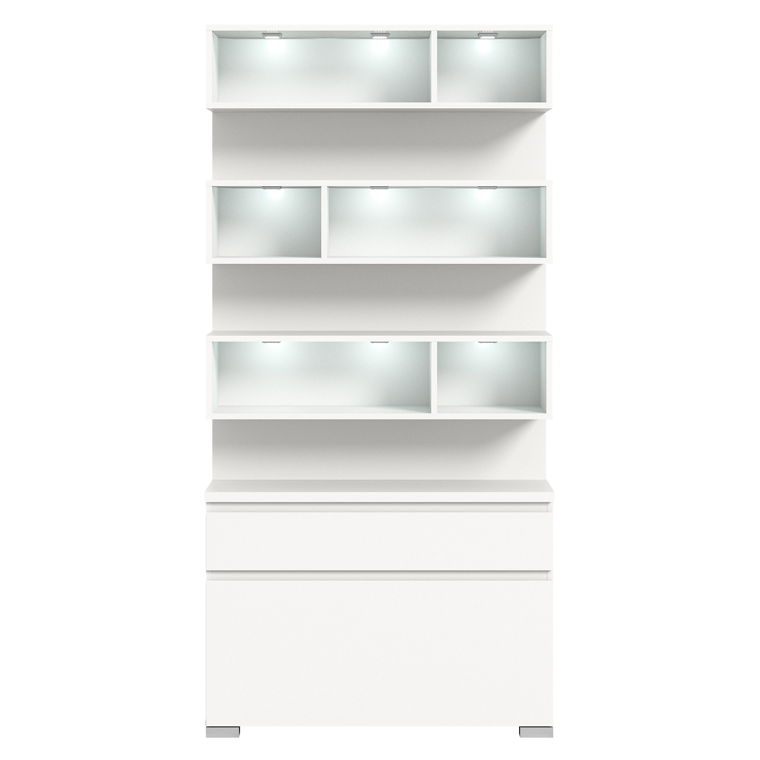 | Ausstattung Schränke: | Klappen, Schublade(n), offene Fächer | ||