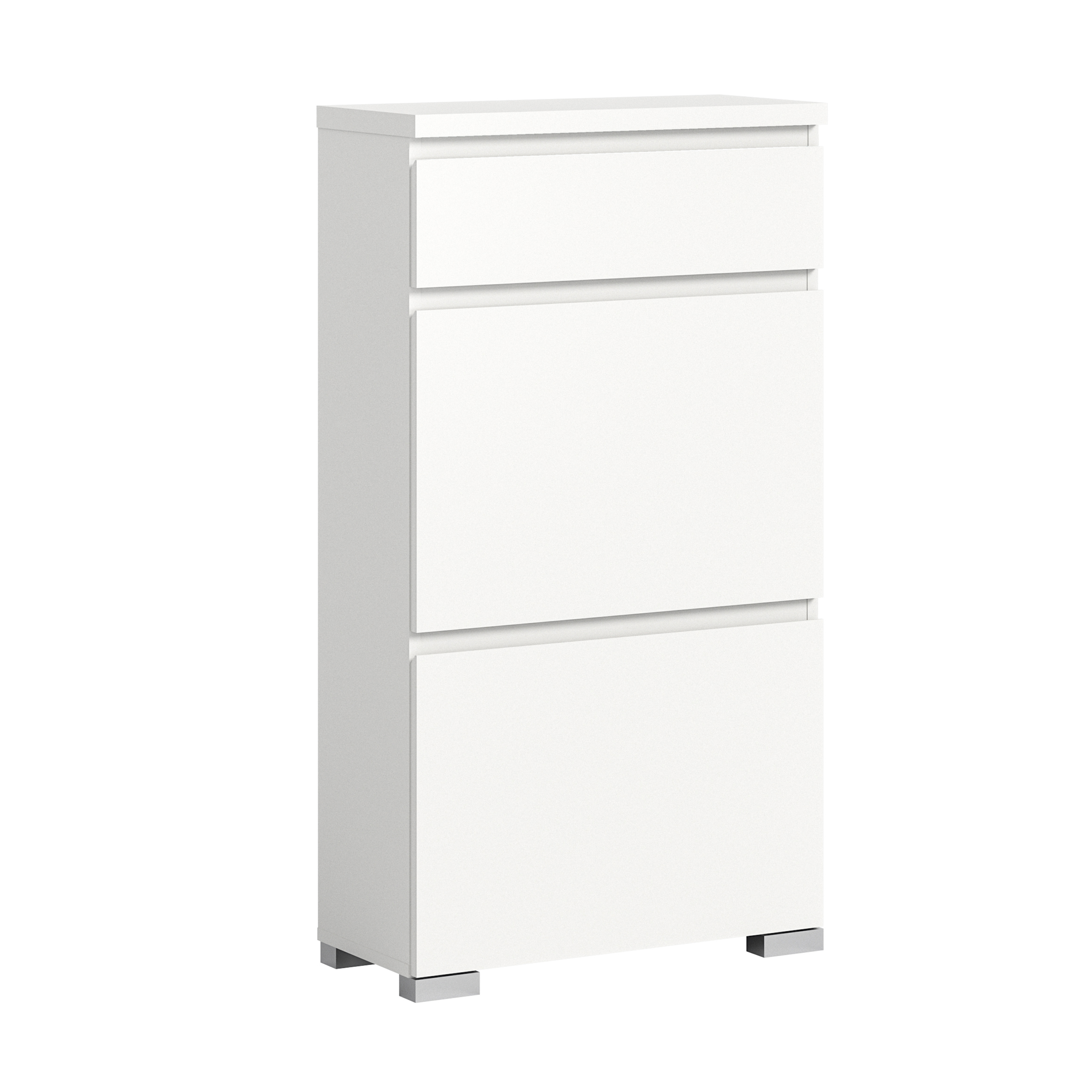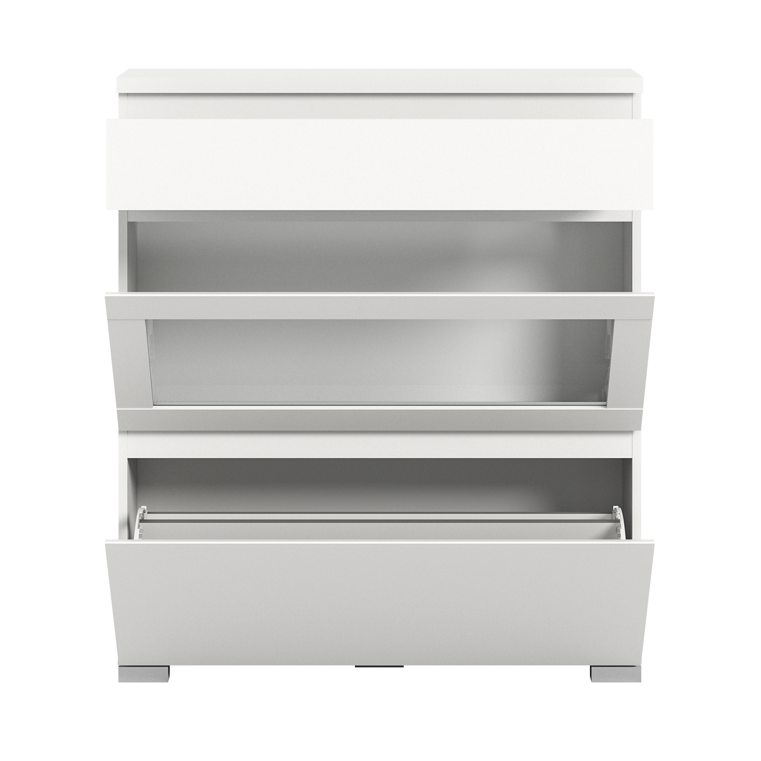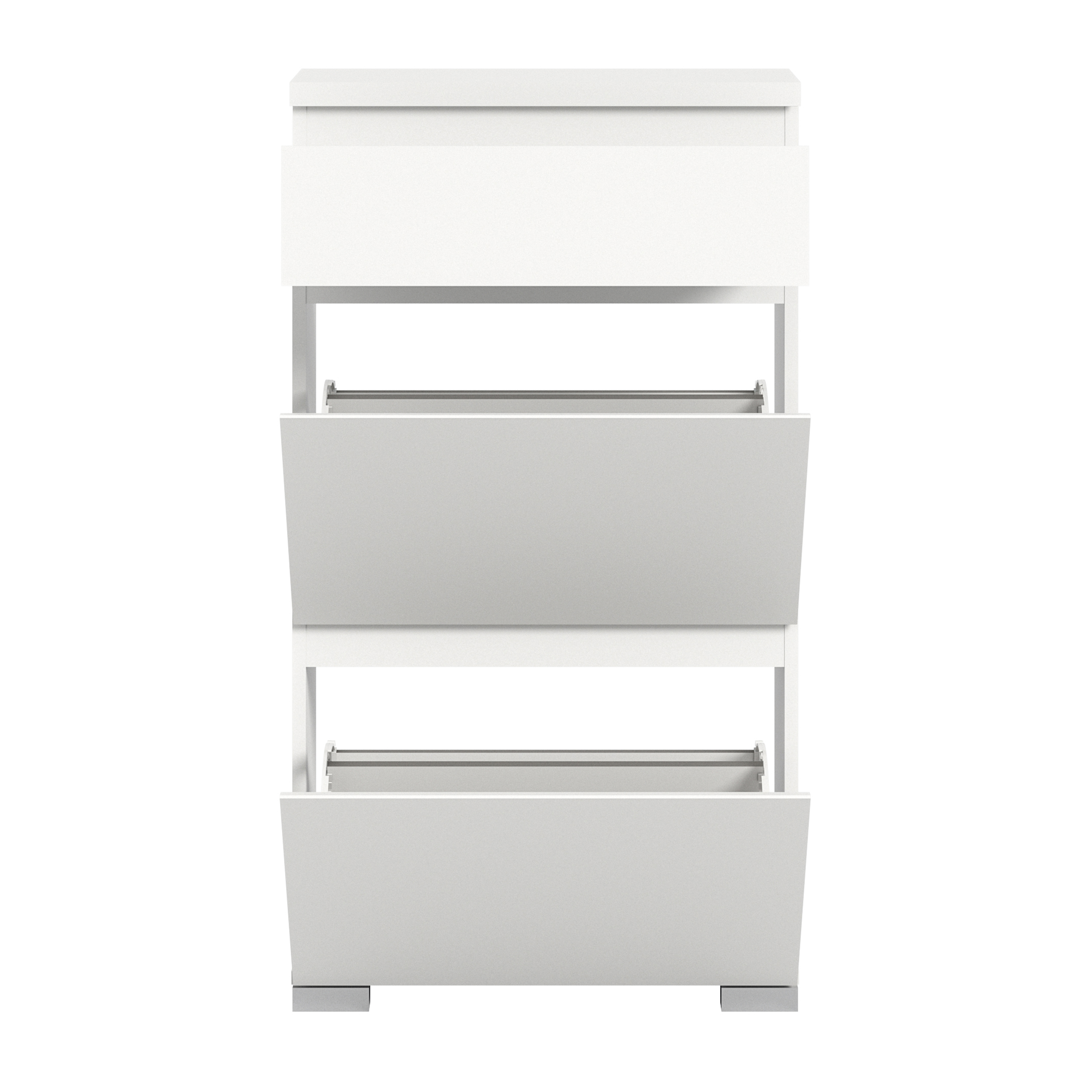 Die elegante Schuhschrankkombination mit den verschiedenen Schuhkippermodellen in Weiß Nachbildung ist die perfekte Lösung, um Ordnung und Stil in Ihrem Eingangsbereich zu vereinen.