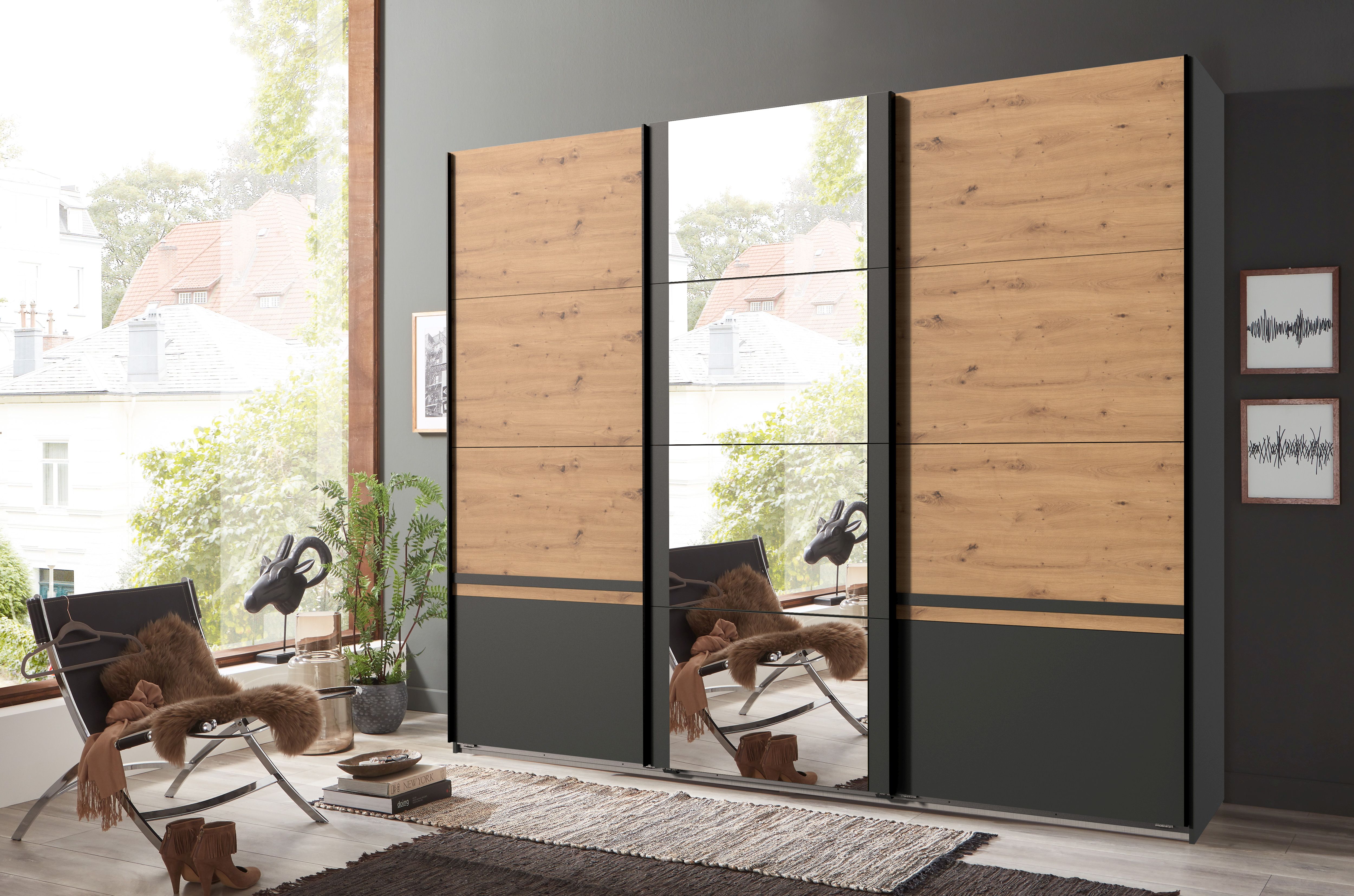 Korpus und Front: Graphit mit Absetzungen in Artisan Eiche Holznachbildung / Spiegel
