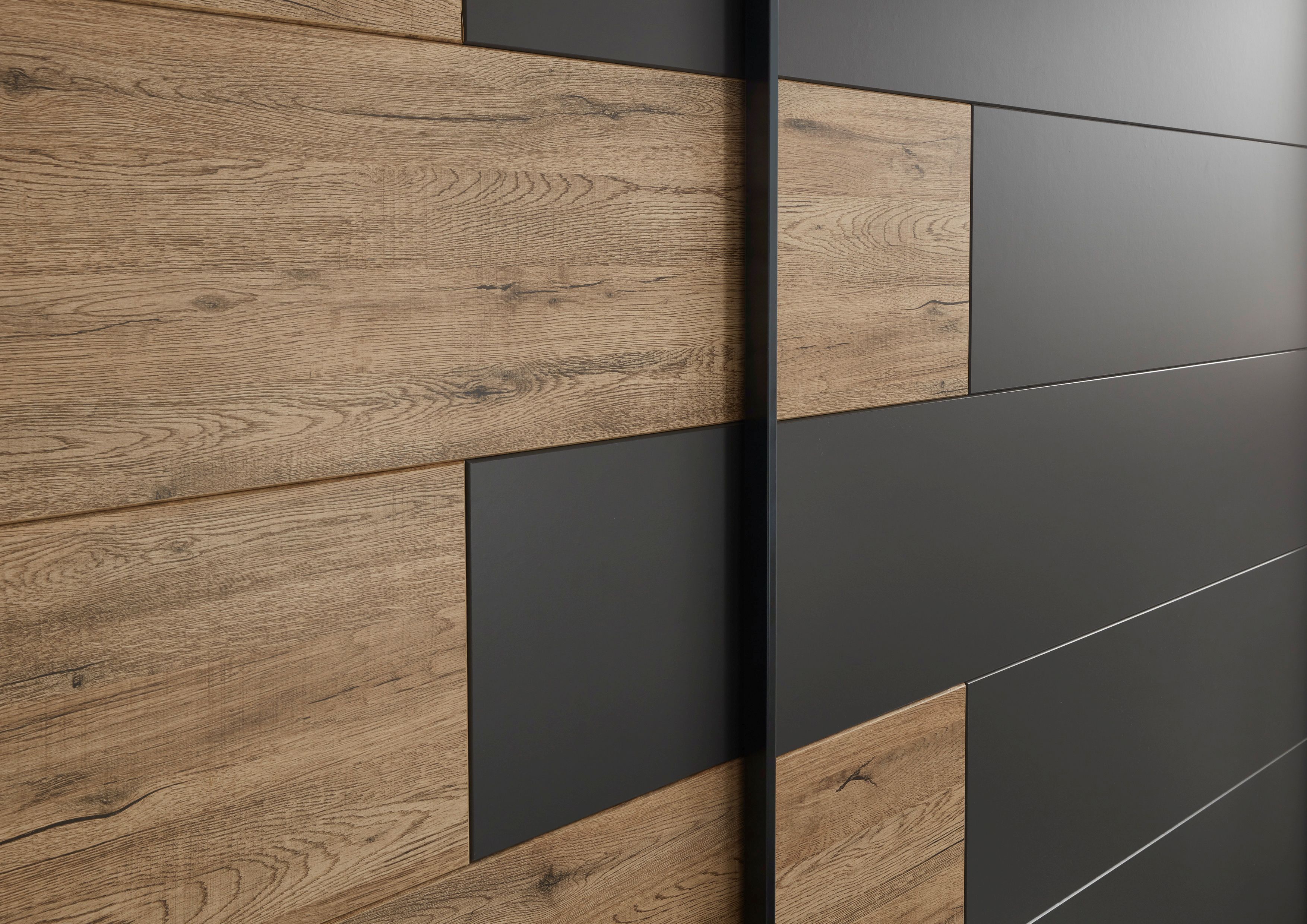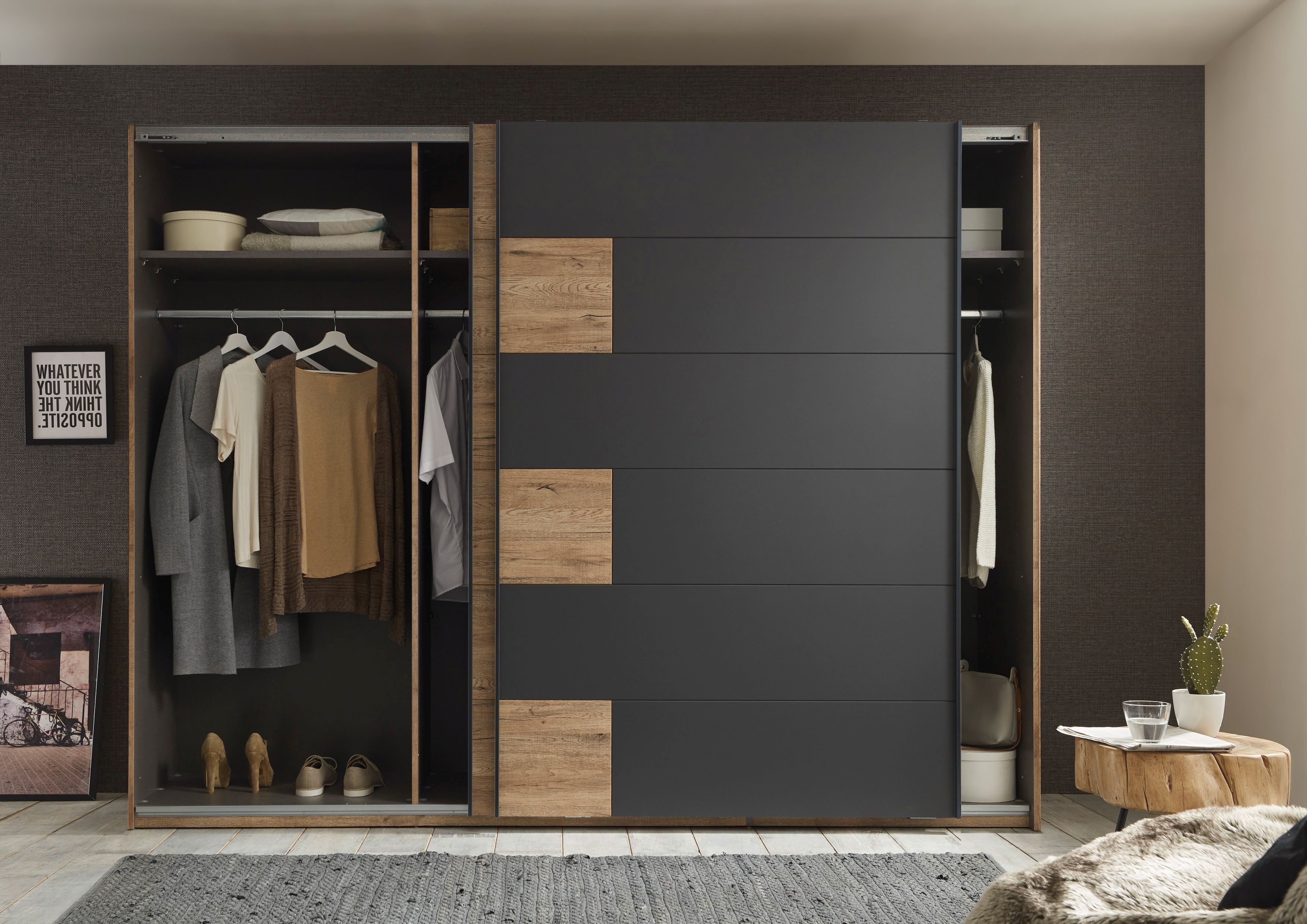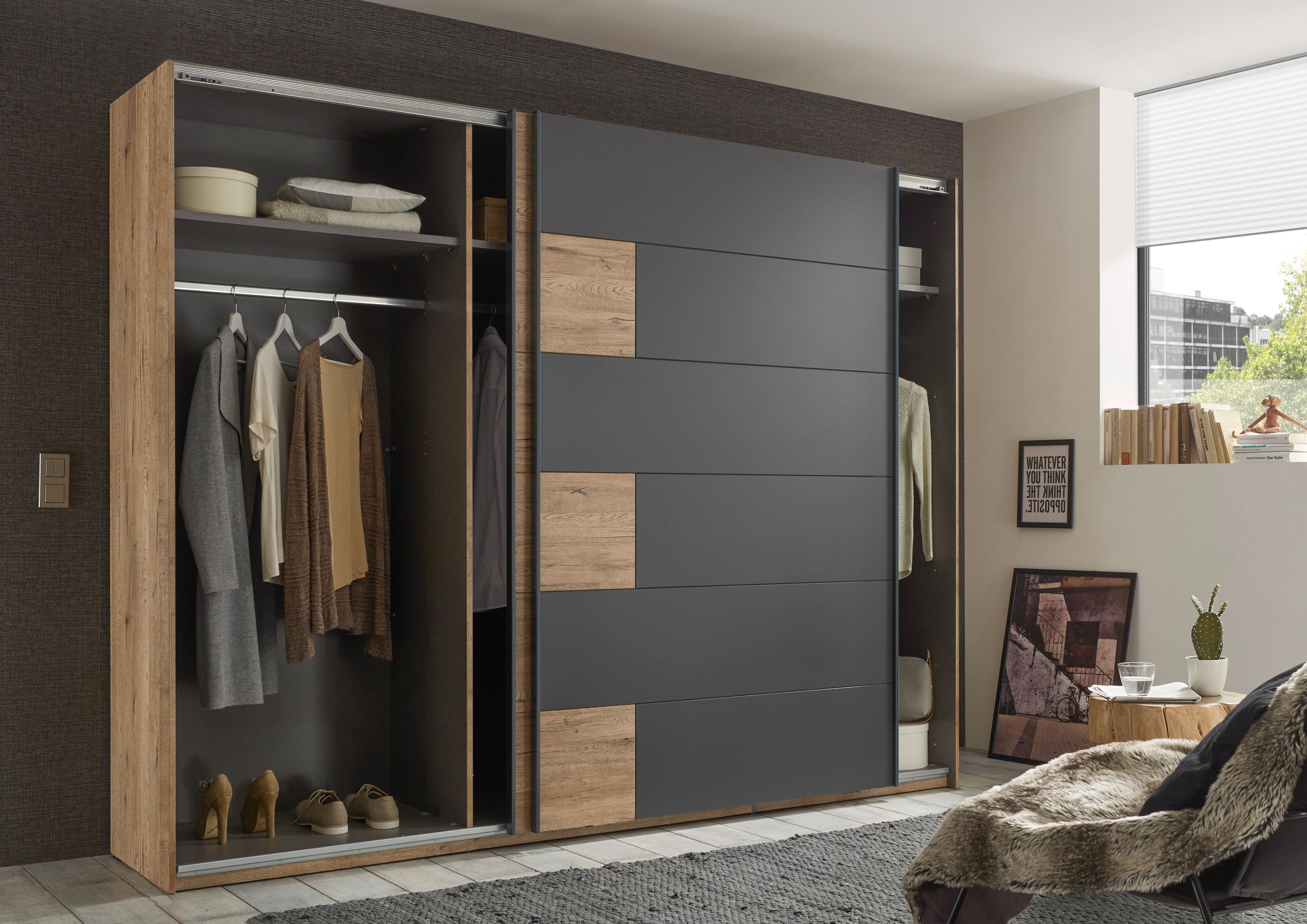 LINEA Moderner Kleiderschrank mit viel Stauraum - Vielseitiger Schwebetürenschrank in Bartex Eiche Optik, Graphit - 270 x 211 x 58 cm (B/H/T)