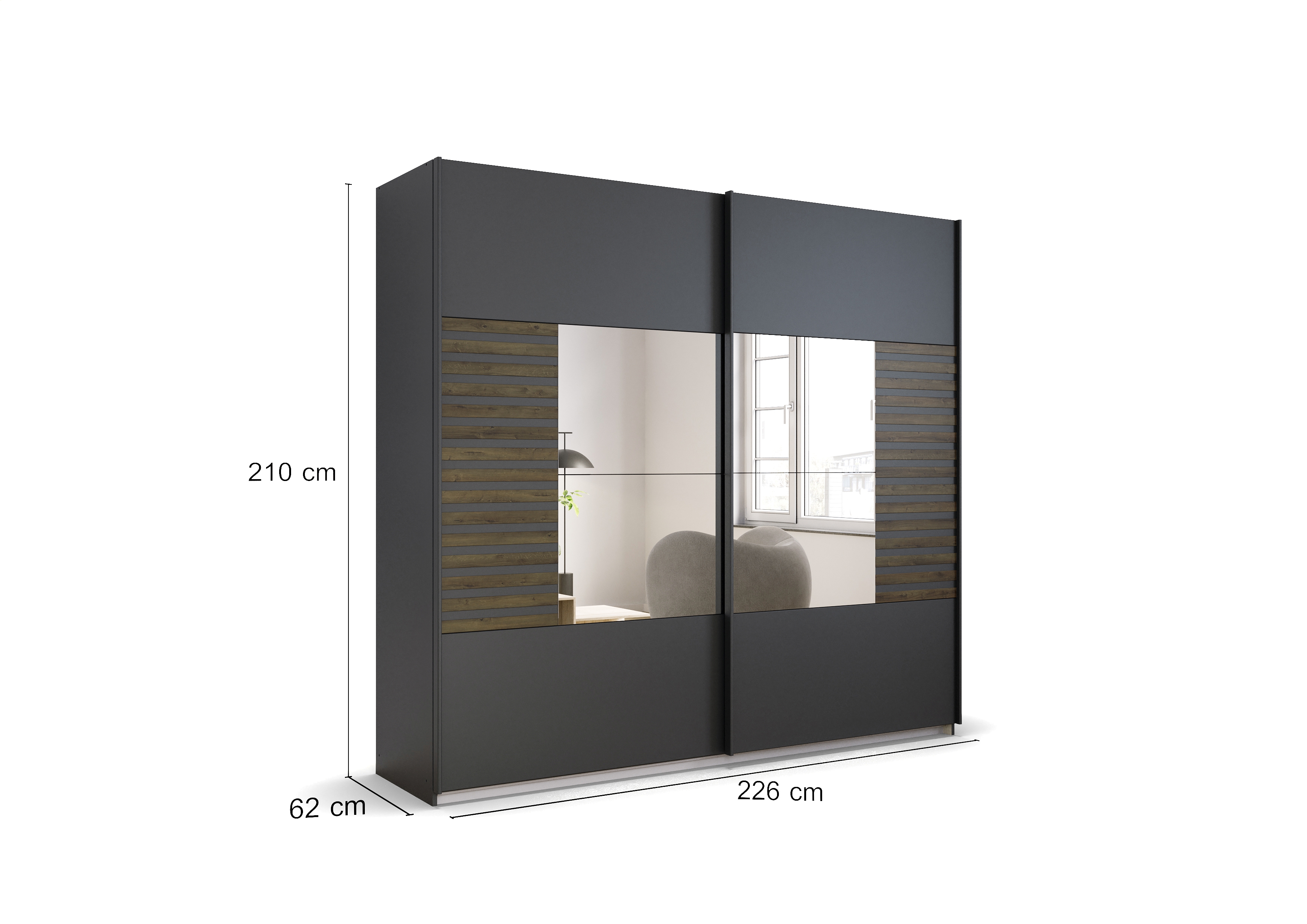 | Schwebetürenschrank | 226 | 210 | 62 |