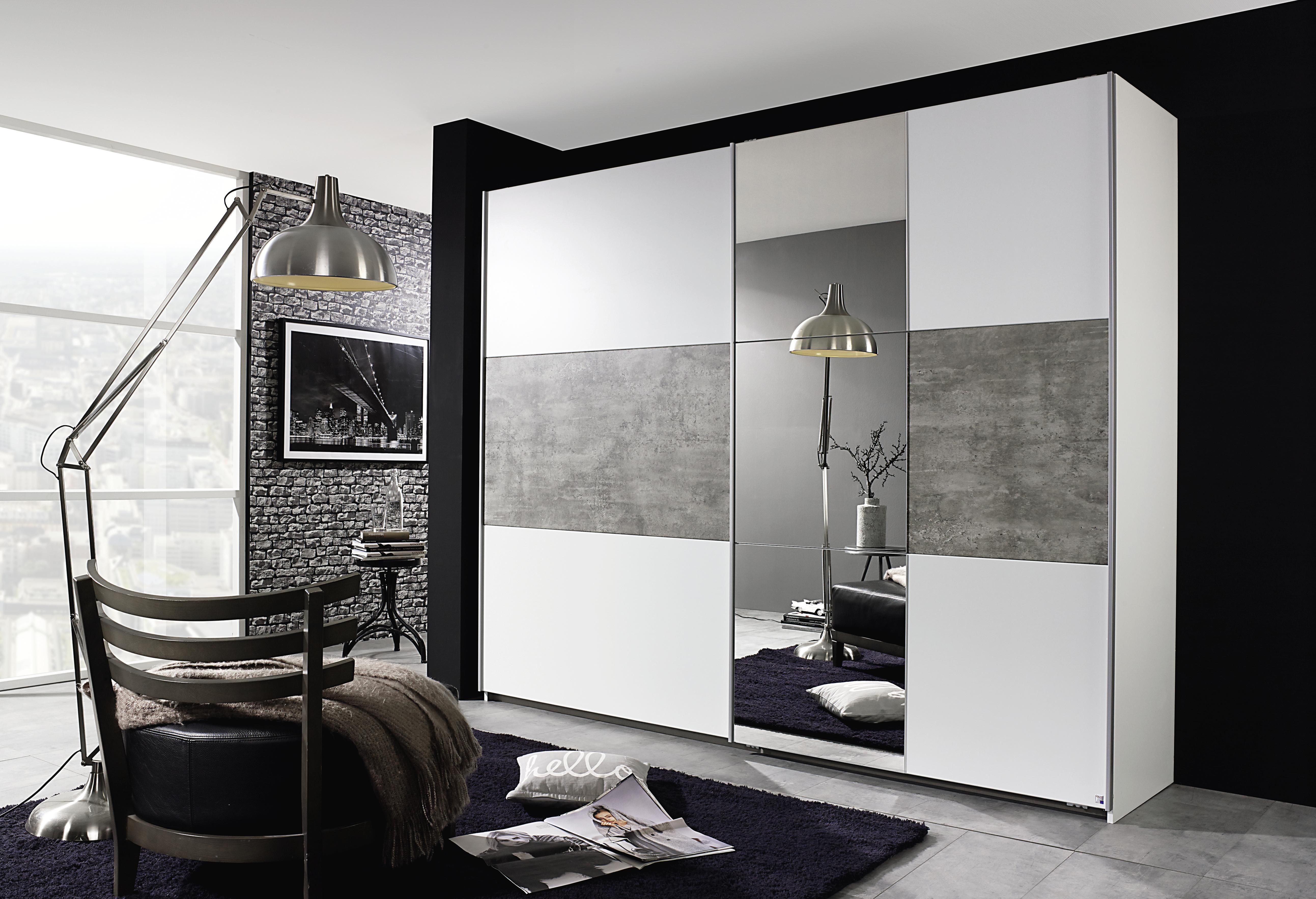 Optisch hat der PRENZLAU Schiebetüren Kleiderschrank mit Teilspiegelfront eine glatte 1+ verdient: Die Kombination aus weißer Front mit Applikationen von Stone grey und einem Teilspiegel ist ein erstklassiges Beispiel für modernes Industriedesign in der Einrichtung. Ein echtes Prachtstück im geräumigen Schlaf- oder Gästezimmer. Und wenn es der angesagte, coole Betonstein-Look nicht schafft, der Preis wird Sie definitiv sprachlos machen: Für den absoluten Hammerpreis erhalten Sie einen erstklassig designten, hochwertigen Kleiderschrank aus beschichtetem Spanholz mit besten Staumöglichkeiten.