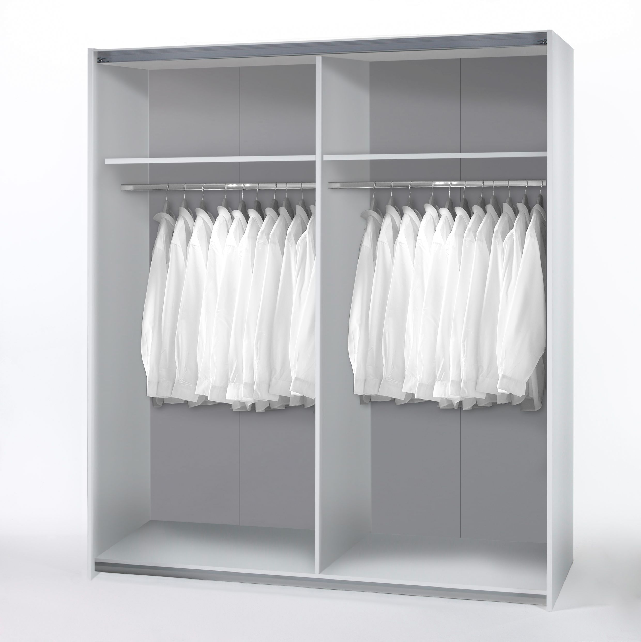 - LIEFERUMFANG - Im Paket enthalten sind: 1x Schwebetüren-Schrank, 2x Einlegeböden, 2x Kleiderstangen und Montage-Material.