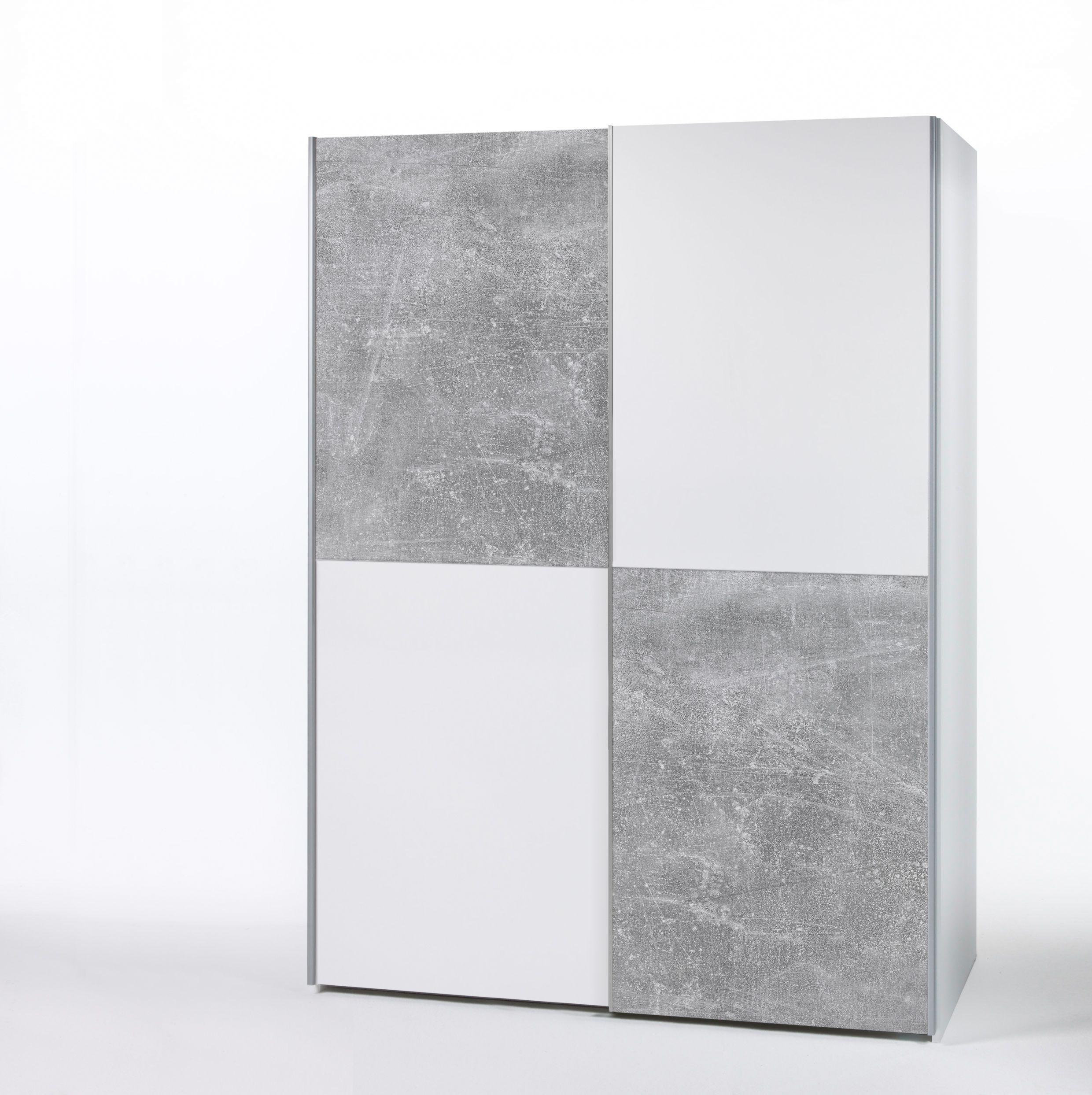PULS Eleganter Kleiderschrank mit viel Stauraum - Vielseitiger Schwebetürenschrank in Weiß, Schachbrett Beton - 170 x 195 x 58 cm (B/H/T)