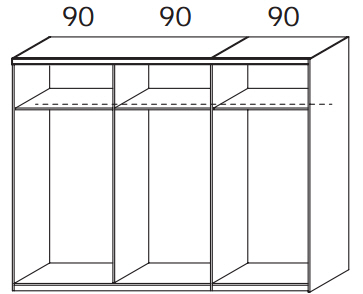 Dass QUADRA ungemein stilvoll daherkommt, ist offensichtlich. Und auch, dass der Rauch Schwebetürenschrank modern und praktisch ist. Denn wer die Rauch Pack's Linie kennt, weiß, dass sich die beiden Eigenschaften nicht ausschließen. Für eine mühelose Kleideraufbewahrung sorgen sowohl die platzsparenden Schiebetüren als auch die insgesamt drei Einlegeböden und drei Kleiderstangen. Aufgeteilt in drei einzelne Schrankelemente, ist die gesamte Garderobe perfekt geordnet und verstaut.