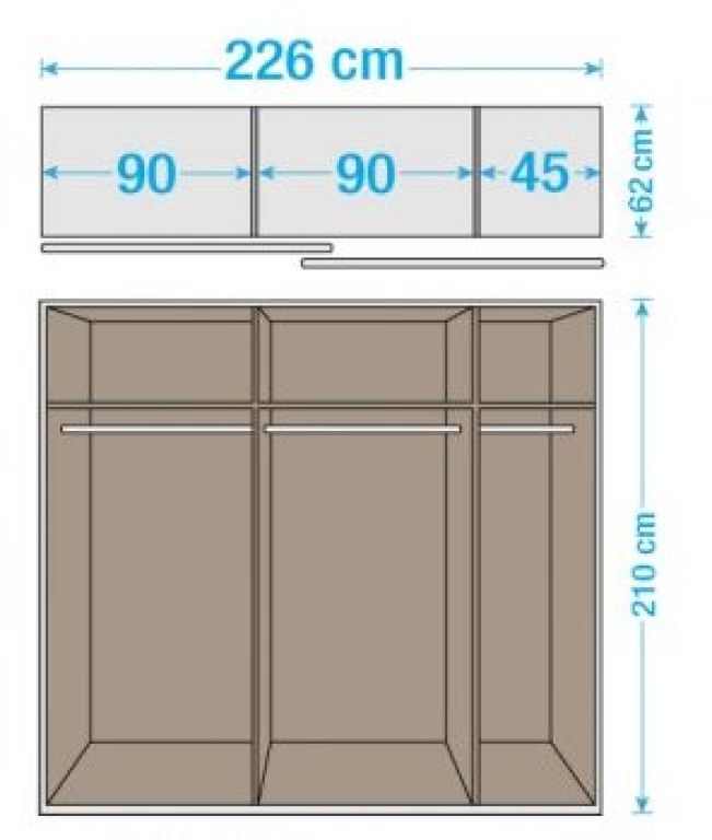- Beste Staumöglichkeiten verteilt auf 226x210x62 cm (B/H/T)