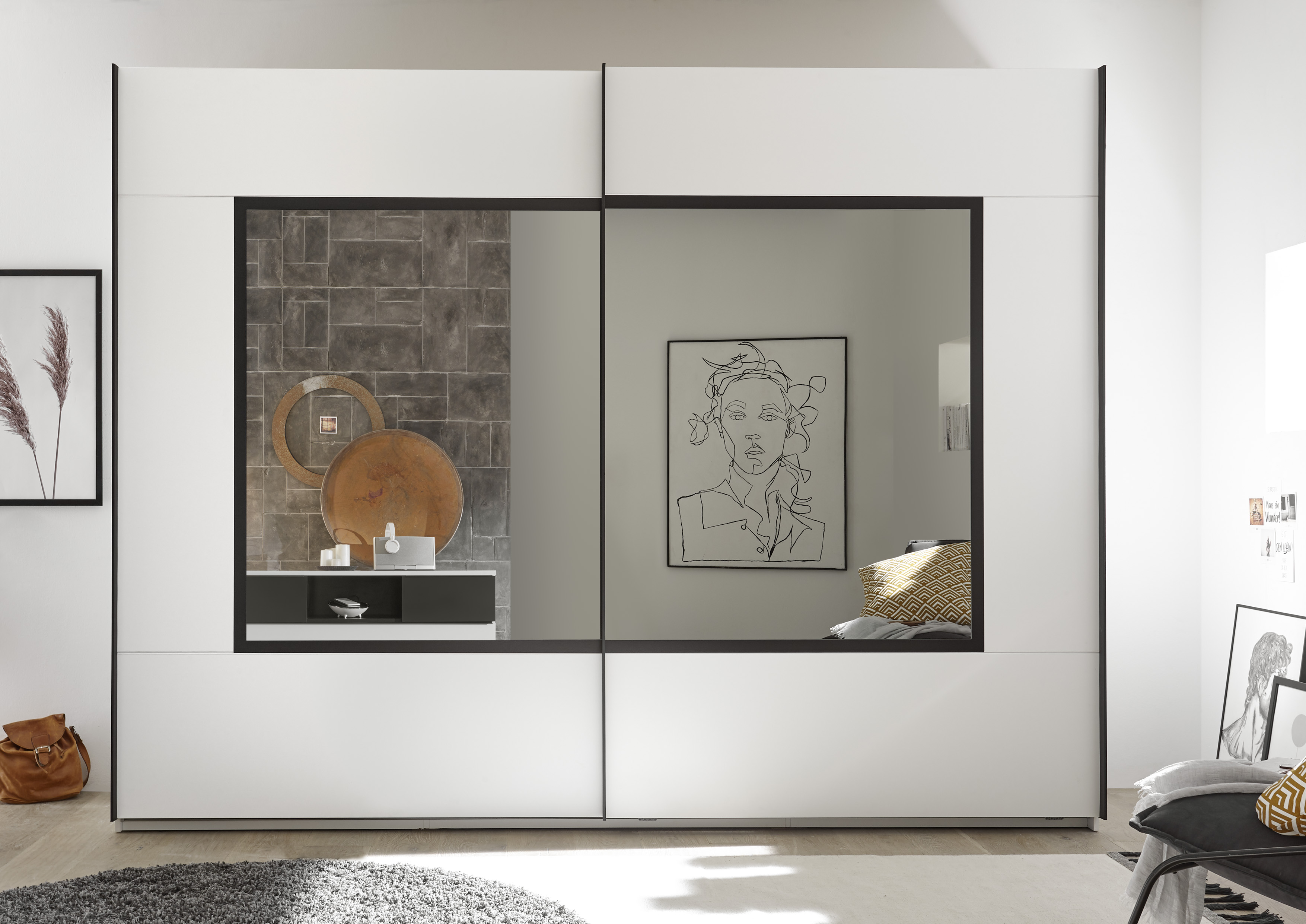 2 Schwebetüren mit Spiegel