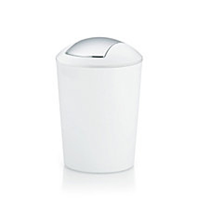Der Mülleimer ist aus Kunststoff und hat ein Volumen von 5 l. Durch seine reduzierte Form mit leicht gerundetem Schwingdeckel und die Farbkombination von Eimer und silberfarbenem Schwingteil, wirkt der Mülleimer zurückhaltend und elegant. Zum Entleeren wird der Deckel einfach abgenommen.