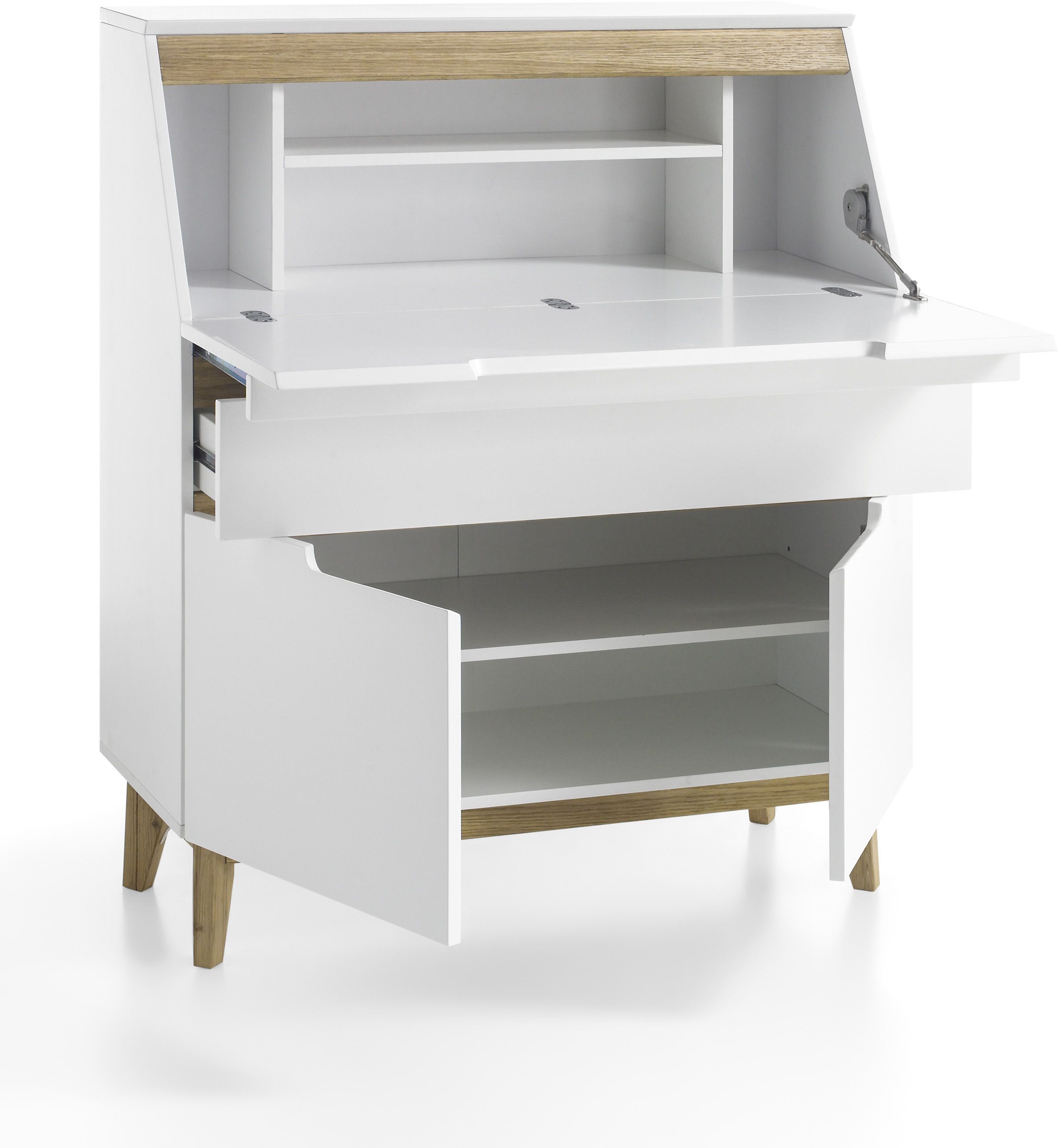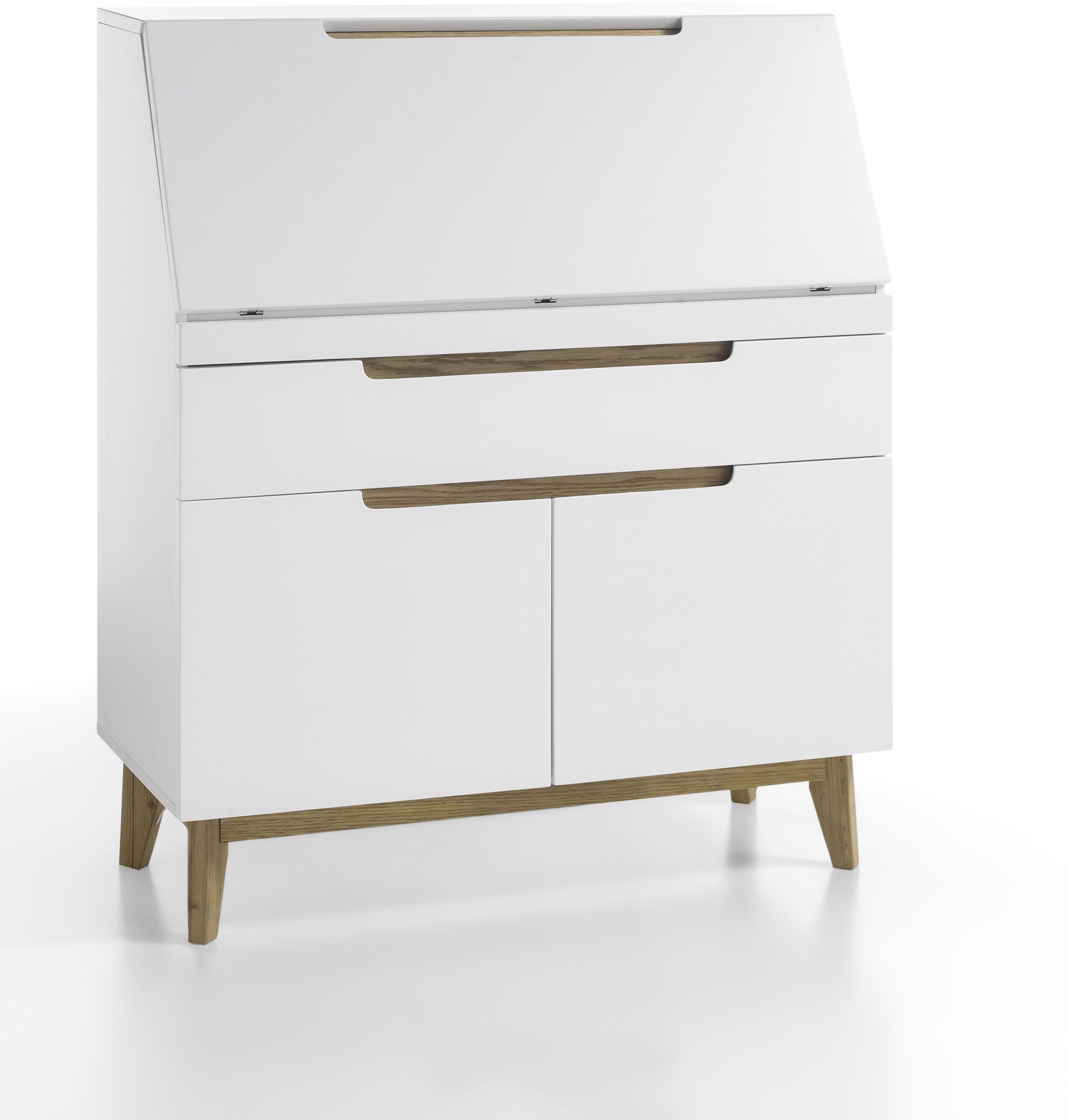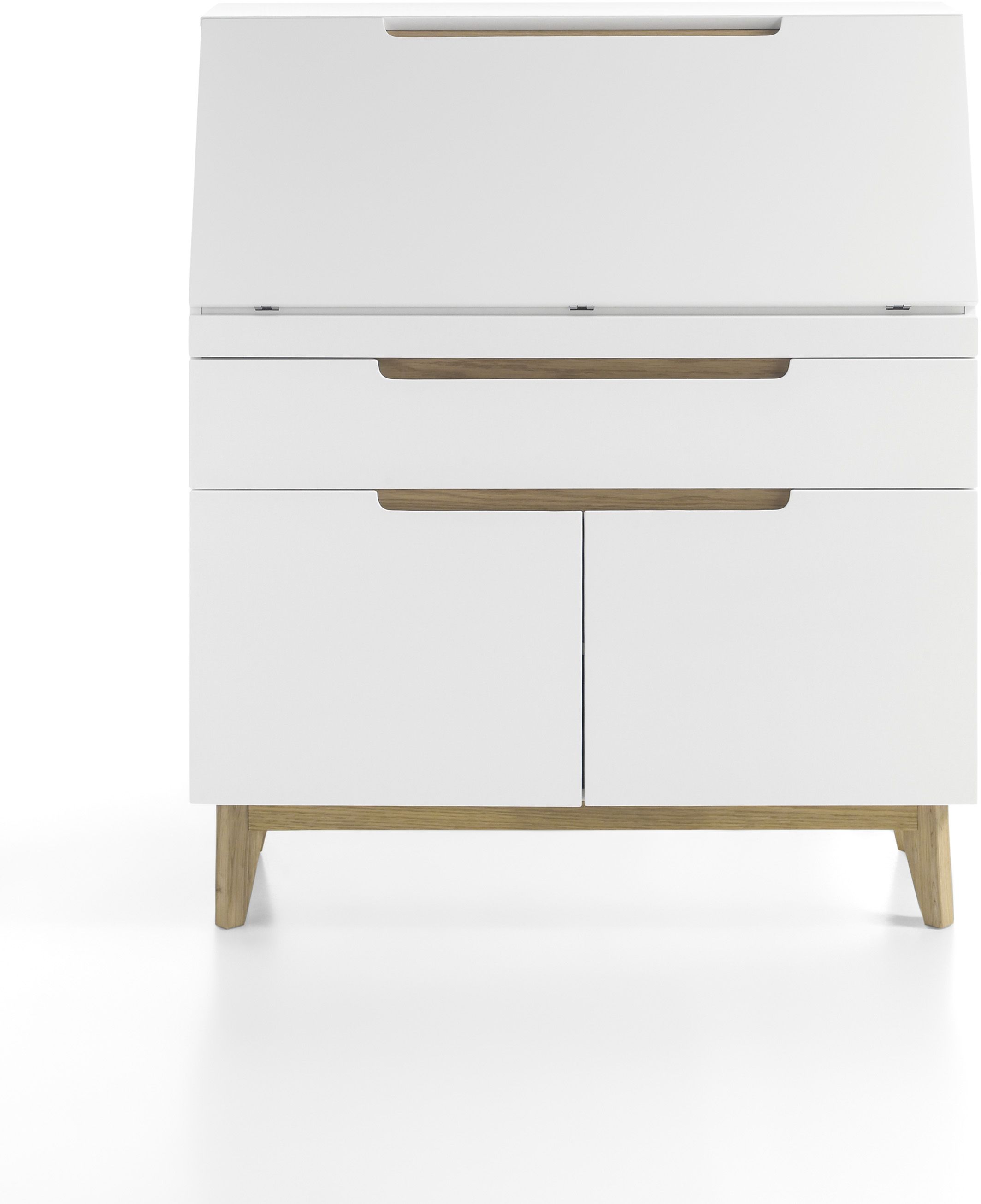 Korpus und Front: MDF (Mitteldichte Holzfaserplatte) matt weiß lackiert