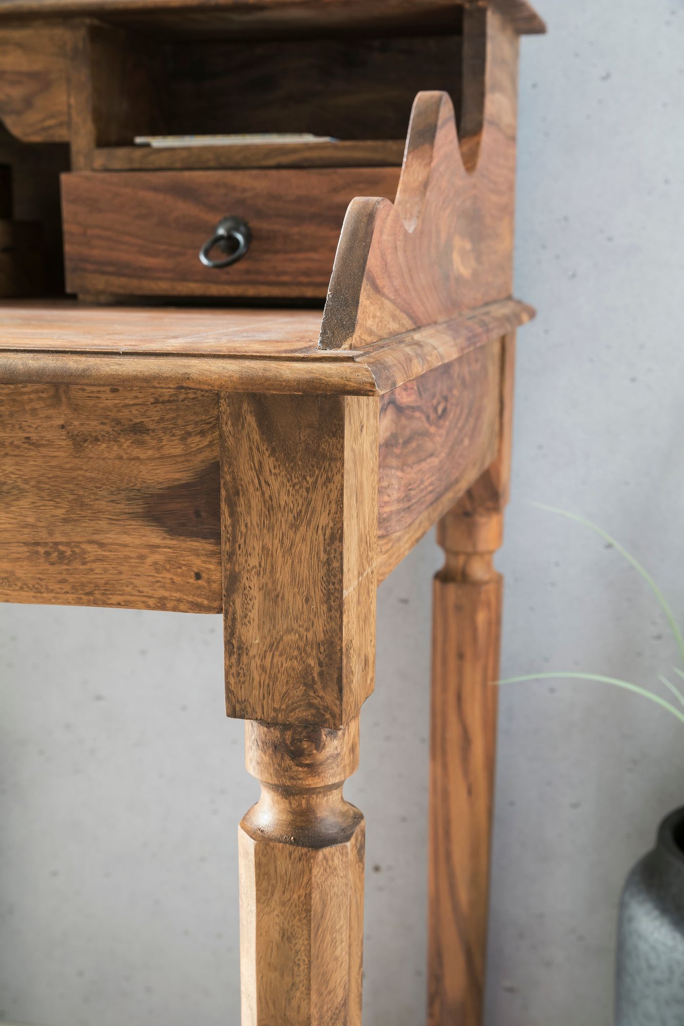 - DESIGN ✔ Arbeitstisch aus Sheesham Massivholz im Landhausstil - Vielseitig einsetzbar im Büro- und Flurbereich