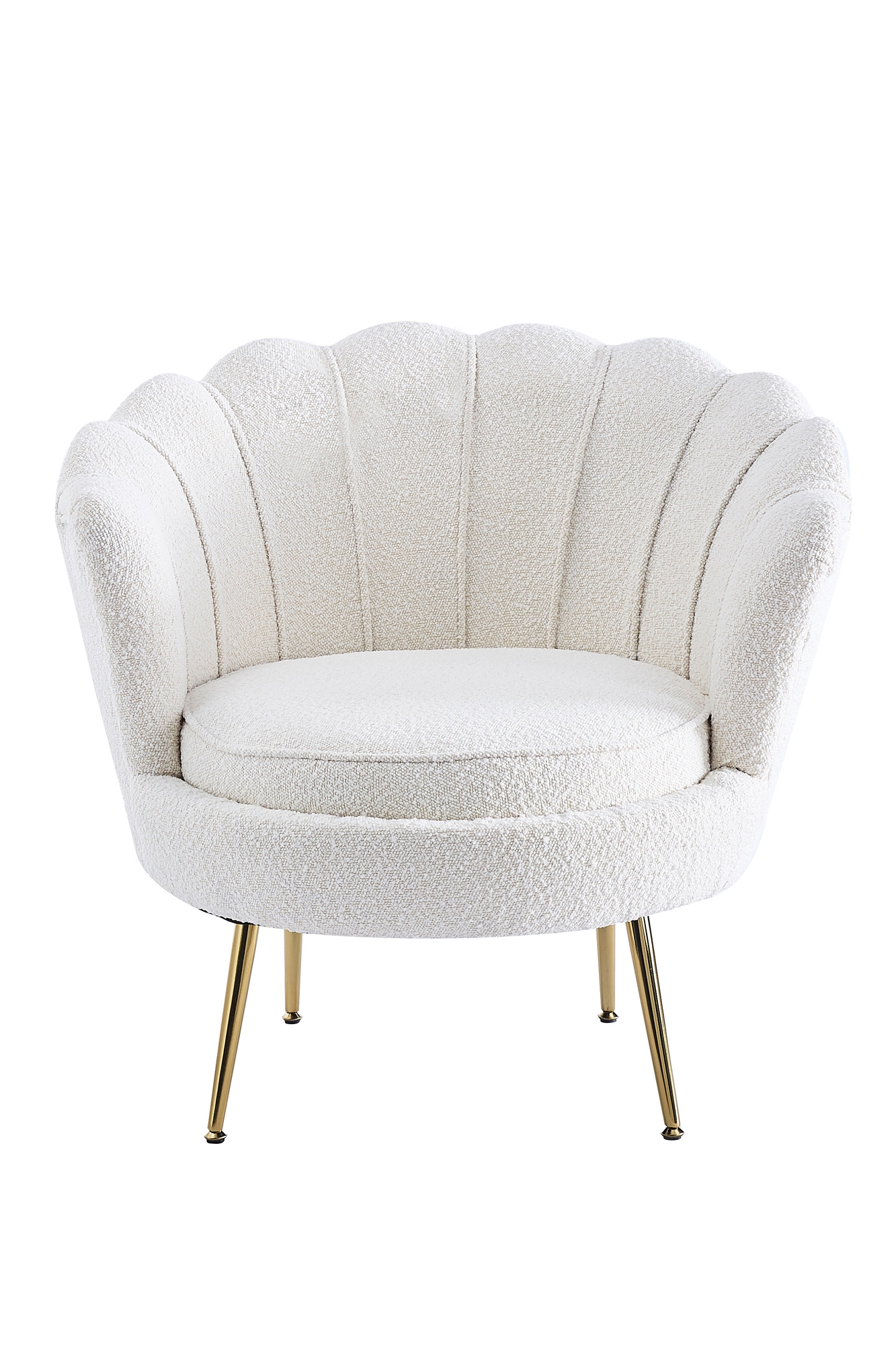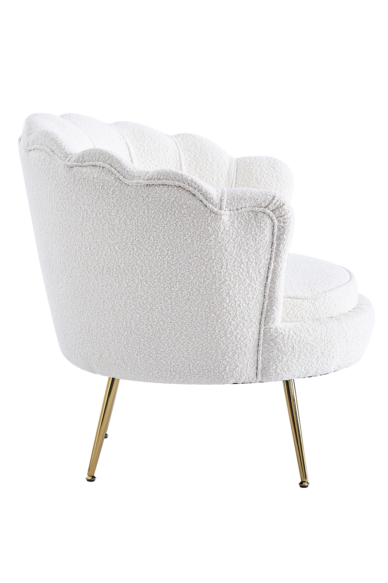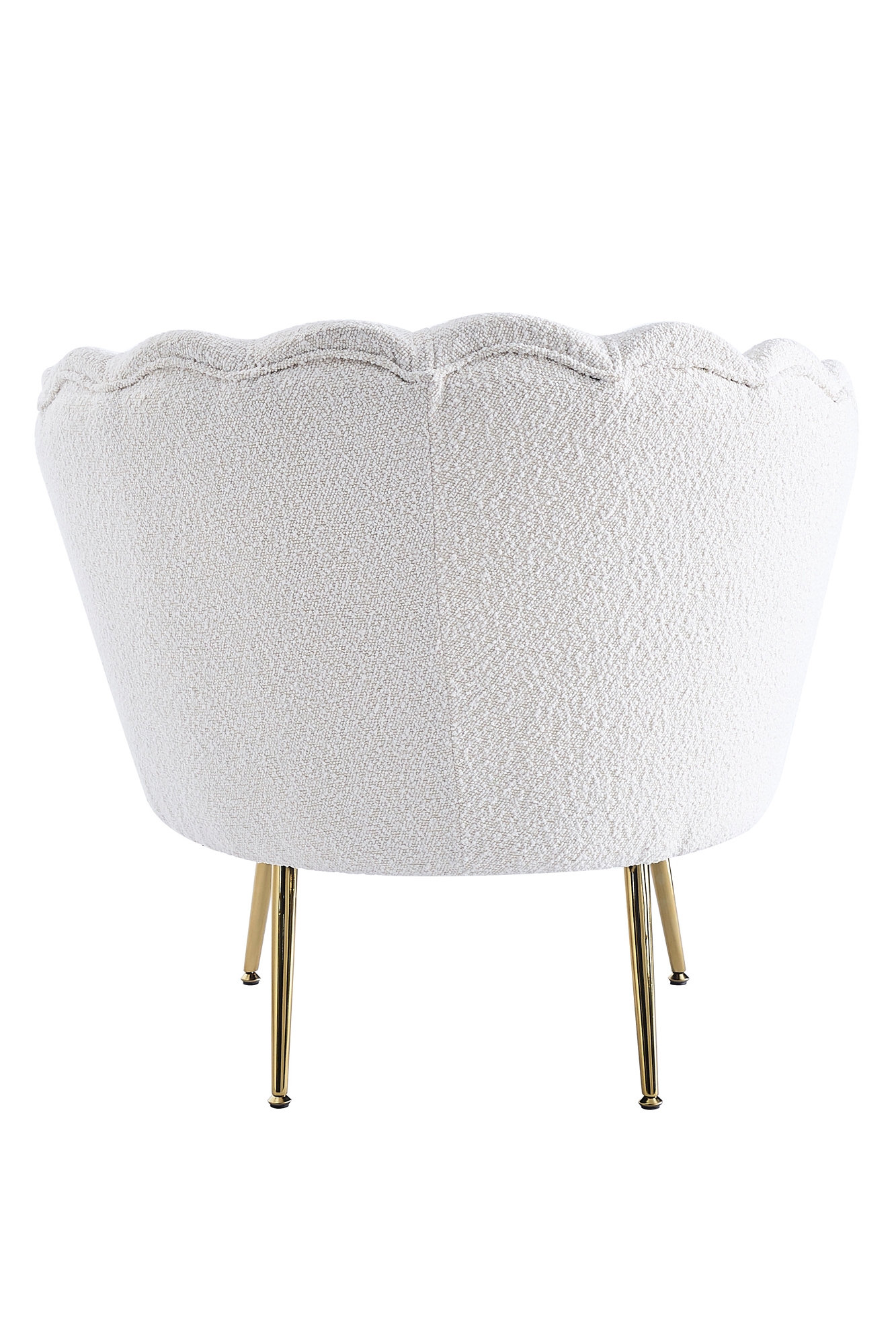 Entfliehen Sie dem Alltag und genießen Sie eine kleine Auszeit. Der moderne Sessel im Muschel-Design besticht durch seinen Bezug aus kuscheligem Teddyfell und überzeugt mit seinem abgerundeten Sitz- und Rückenbereich. Das 4 Fuß Gestell aus vergoldetem Metall gewährleistet nicht nur einen sicheren Stand, sondern bietet auch einen großartigen Kontrast zum Bezug des Sessels. Durch die Polsterung an Sitz- und Rückenfläche, das hohe Sitzkissen und die stylische Form erleben Sie erstklassigen Sitzkomfort. Die abgerundete Form sorgt für einen weichen Look. Der Sessel kann im Wohnbereich zum Relaxen oder als Sitzgelegenheit im Wartebereich dienen. Egal wo er platziert wird, dieser Sessel ist ein echter Blickfang.