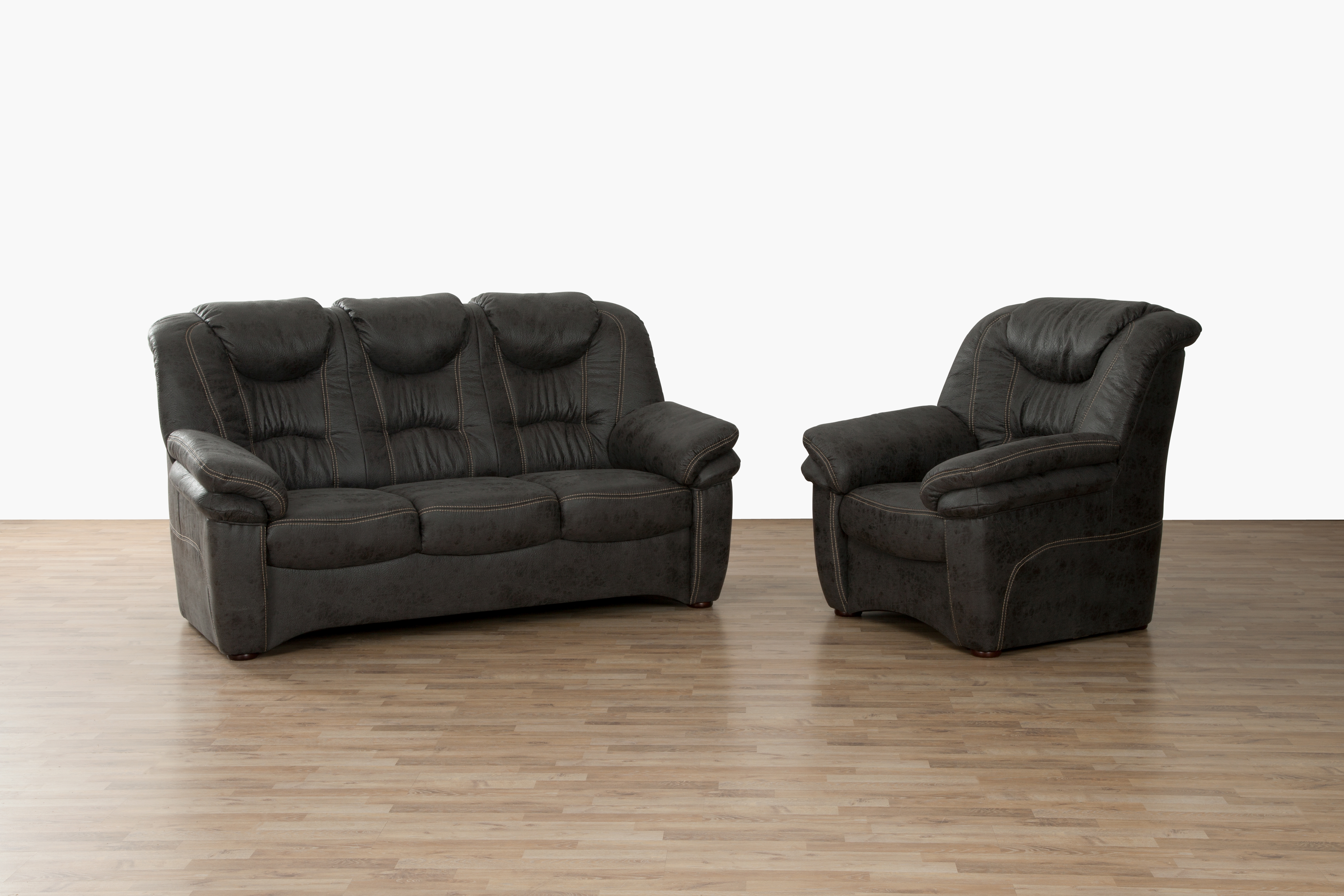 Bezug: Mikrofaser 6092 in der Farbe graubraun aus 100% Polyester ; Ziernähte in hellbeige