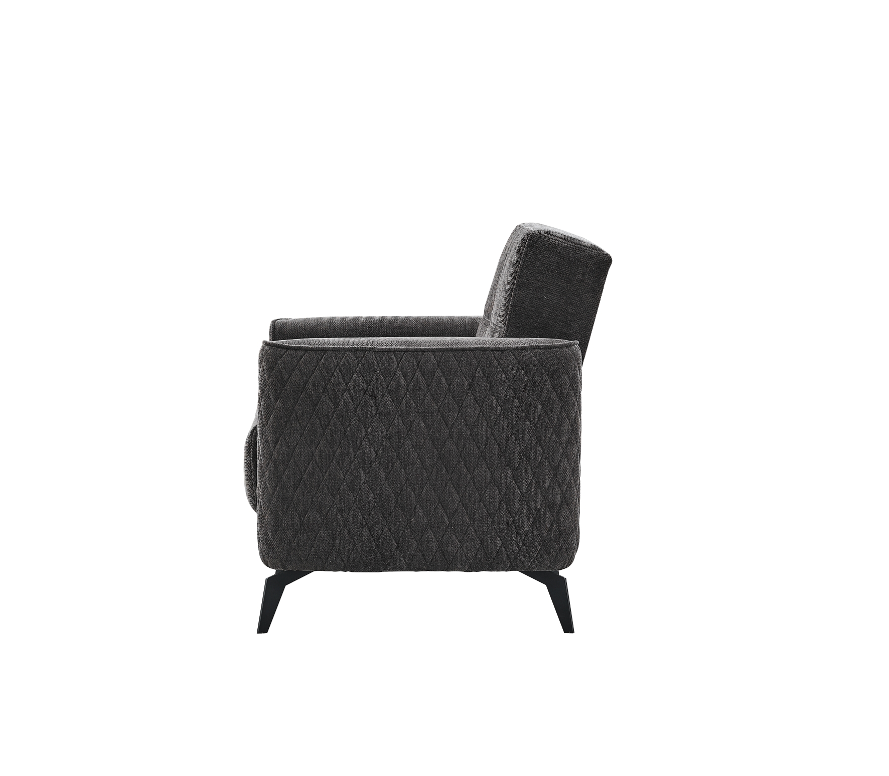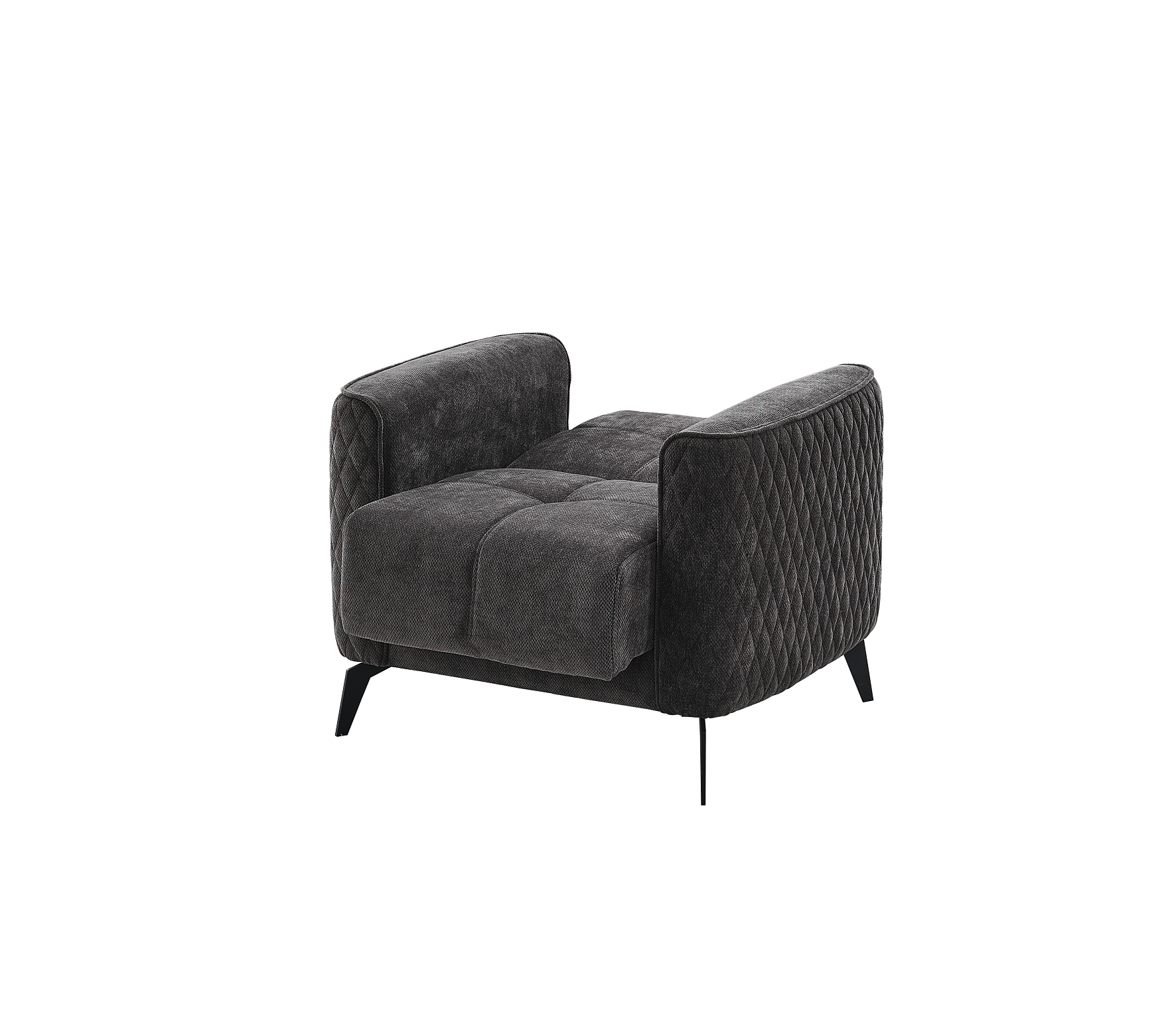 Dieser Sessel ist eine funktionale Ergänzung für Wohnräume mit begrenztem Platz oder als Teil einer Sitzgruppe. Der Bezug ist strapazierfähig und pflegeleicht – ideal für den täglichen Gebrauch. Sitz- und Rückenfläche sind mit Bonellfederkern gepolstert und bieten angenehmen, gleichmäßigen Komfort. Der Rücken ist rundum mit Echtstoff bezogen, sodass der Sessel auch frei im Raum platziert werden kann. Schwarze Metallfüße sorgen für sicheren Stand und eine schlichte, moderne Optik. Die Lieferung erfolgt ohne Dekoration.