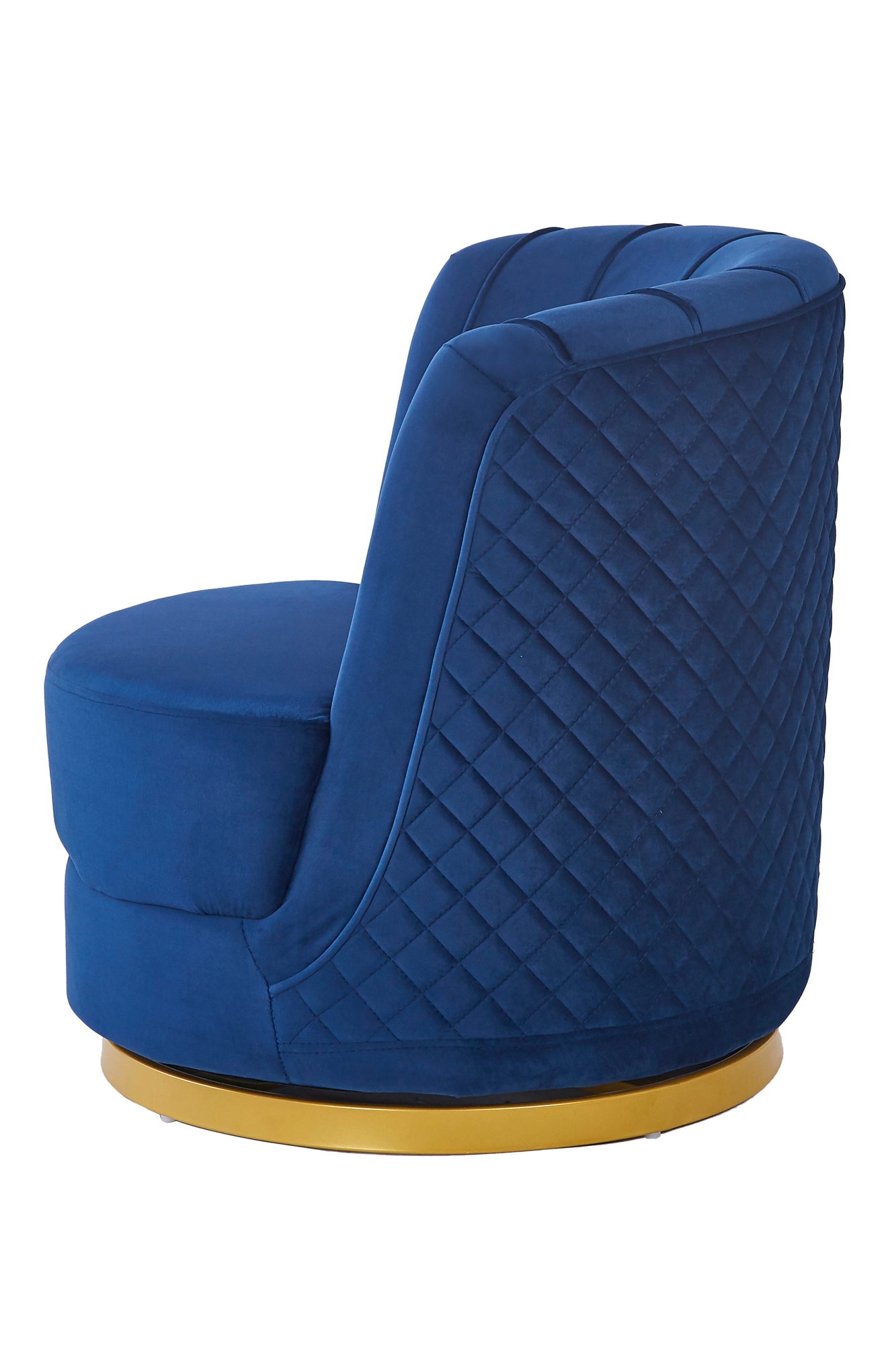 Extravaganter Drehsessel im modernen Design – Der Sessel mit Rautensteppung auf der Rückseite und goldfarbenem Metallsockel mit Drehfunktion wird garantiert zum Hingucker im Wohnbereich. Der schimmernde Samtbezug und vertikale Steppnähte im Rücken runden das glamouröse Bild gekonnt ab. Das üppig gepolsterte Sitzkissen sorgt für optimalen Sitzkomfort. Egal ob in der Leseecke, am Schreibtisch oder an der Schminkkommode – Der 360°-Drehsessel wird zum edlen Designkompagnon in Ihrem Zuhause. Erhältlich ist das Sitzmöbel in 5 edlen Farbvariationen.