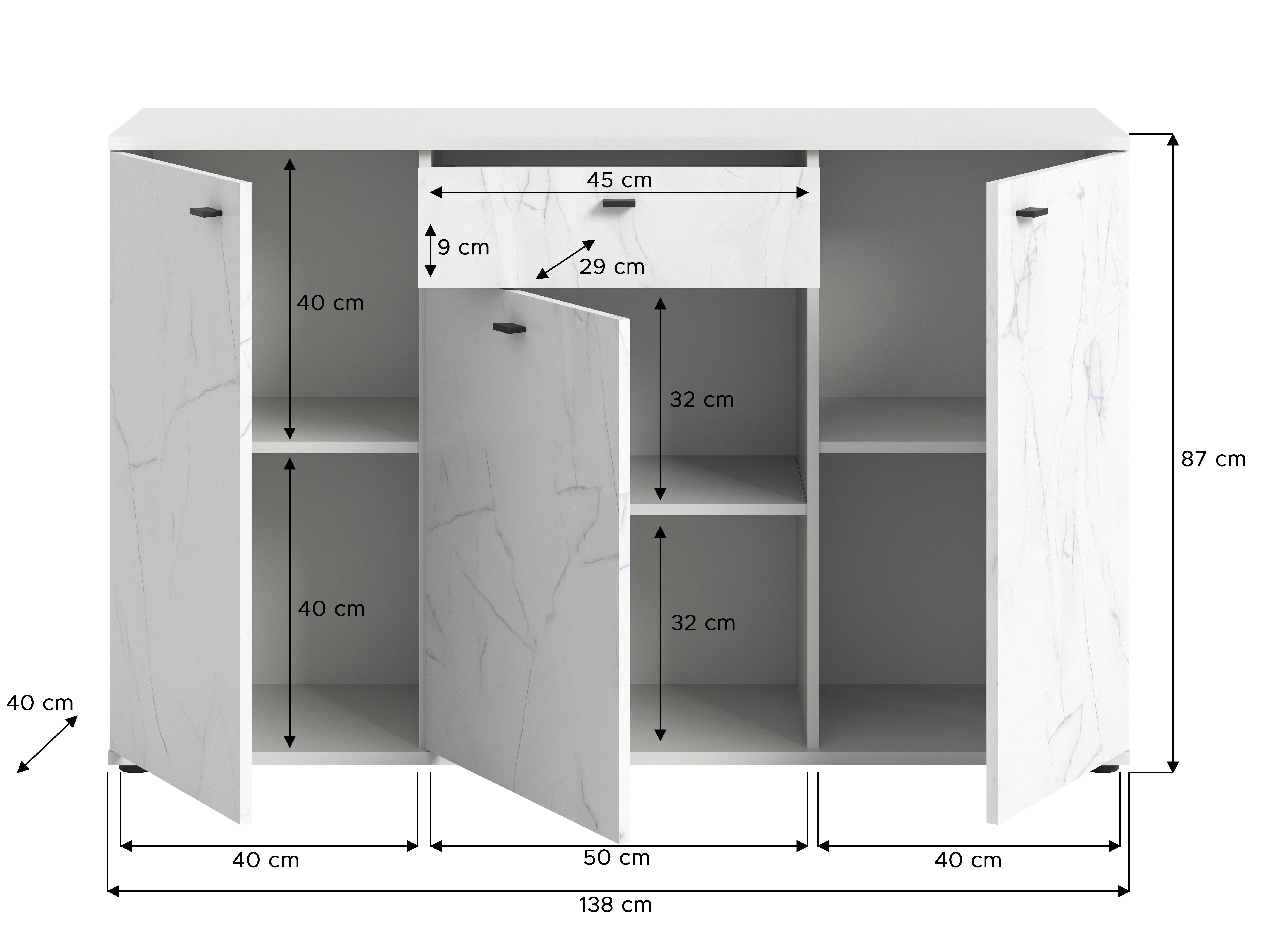Elegantes Sideboard in Marmor Weiß Nachbildung - Perfekte Größe für Ihr Zuhause Diese stilvolle Kommode in edler Marmor Weiß Nachbildung ist ein echter Blickfang für Ihr Wohnzimmer, Schlafzimmer oder den Flur. Die täuschend echte Marmor-Optik verleiht der Kommode eine edle Note.