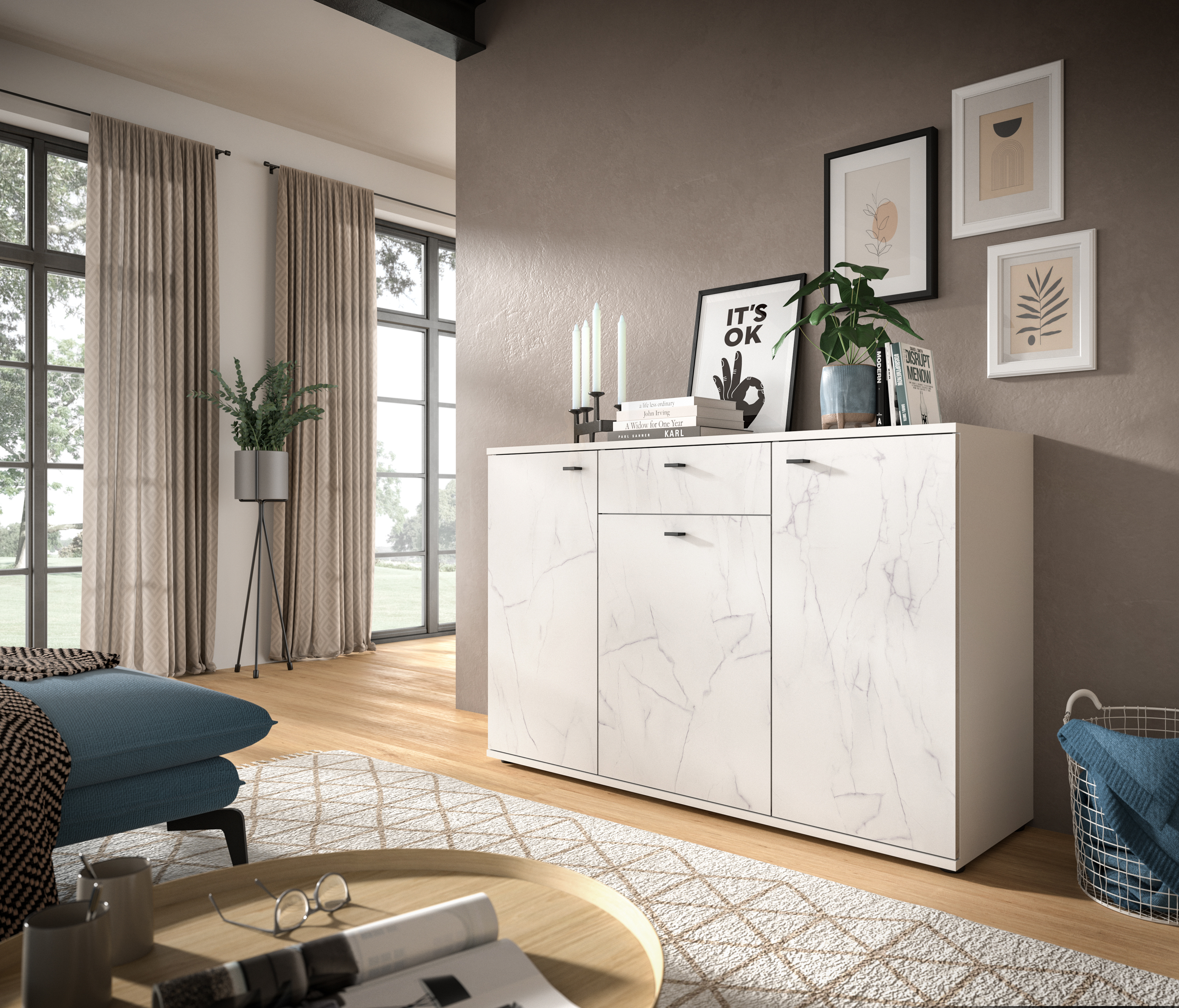 - Design/Stil: Modernes Sideboard mit einer hochwertigen Mamor weiß Nachbildung mit zeitlosem und elegantem Design.