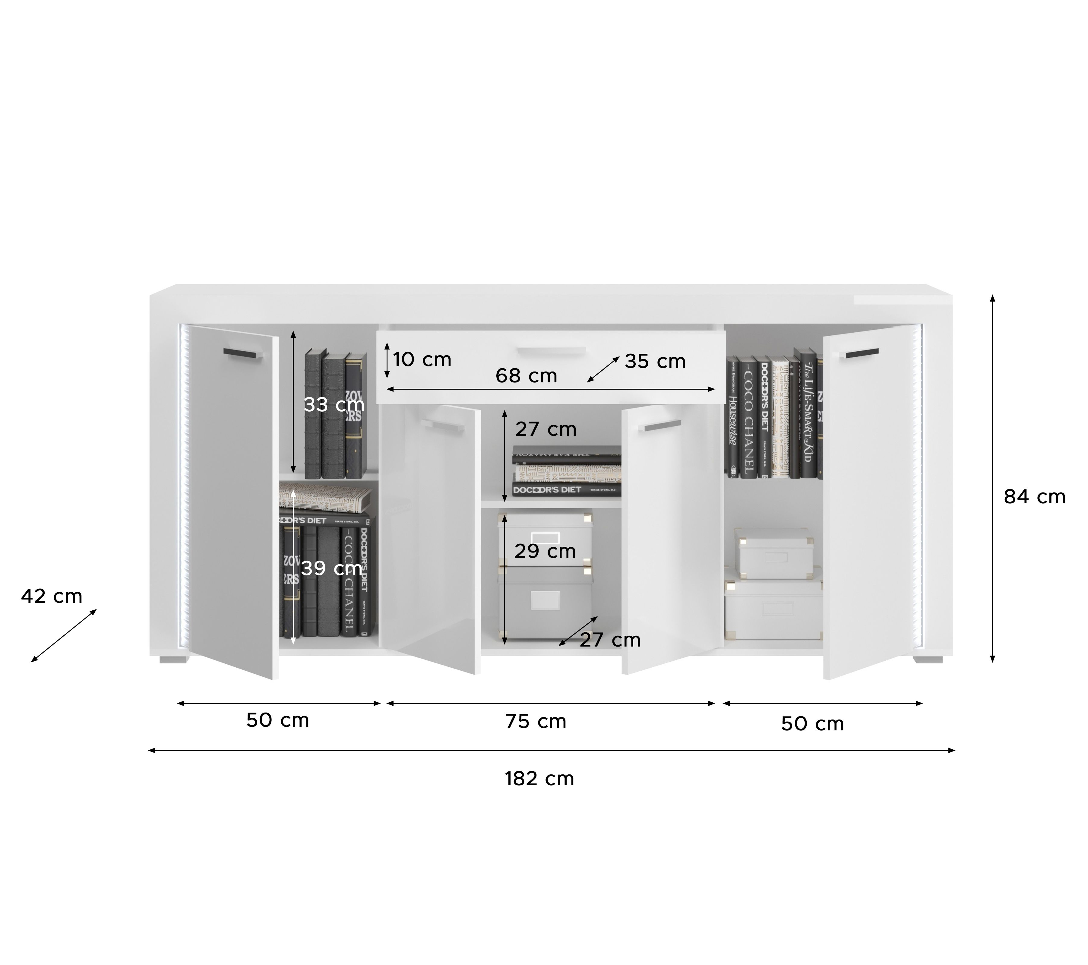 Mit den großzügigen Maßen von 182x84x42 cm bietet es nicht nur reichlich Stauraum, sondern setzt auch ein beeindruckendes Statement in jedem Raum. Entdecke jetzt die perfekte Kombination aus Funktionalität und Stil für deine Einrichtung!