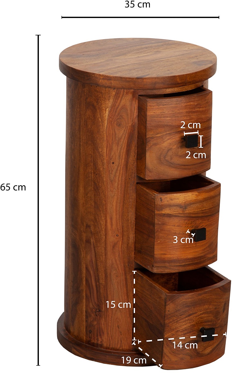 ABMESSUNGEN ✔ Breite: 35 cm // Höhe: 65 cm // Tiefe: 35 cm // Innenmaße je Schublade (BxHxT): 14 x 15 x 19 cm // Maximalbelastbarkeit der Ablagefläche: ca. 30 kg.