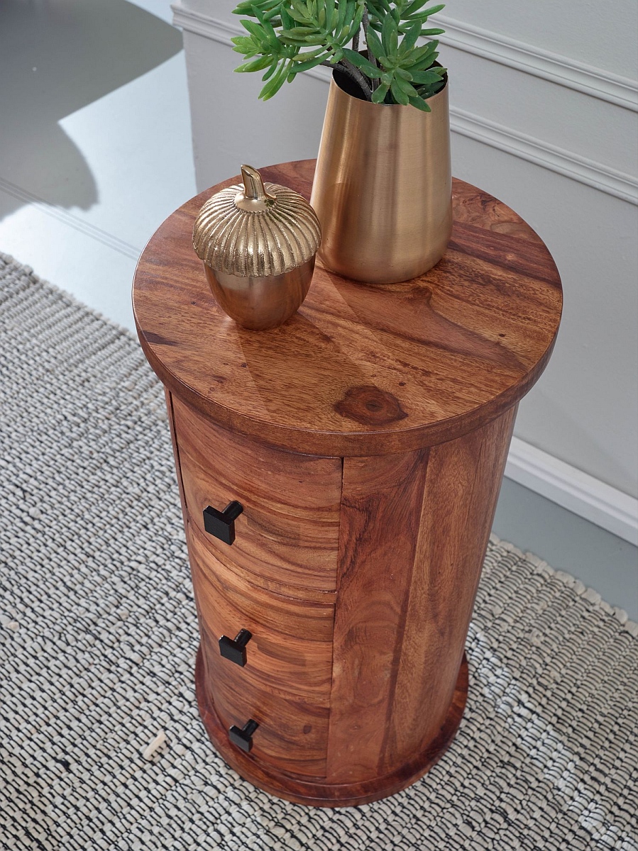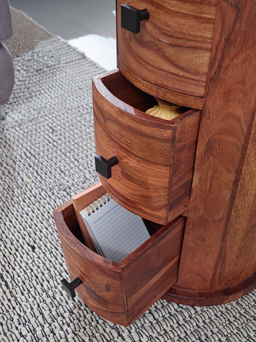 Korpus/Schubladen: Sheesham massiv (Indien) mit Klarlackbeschichtung