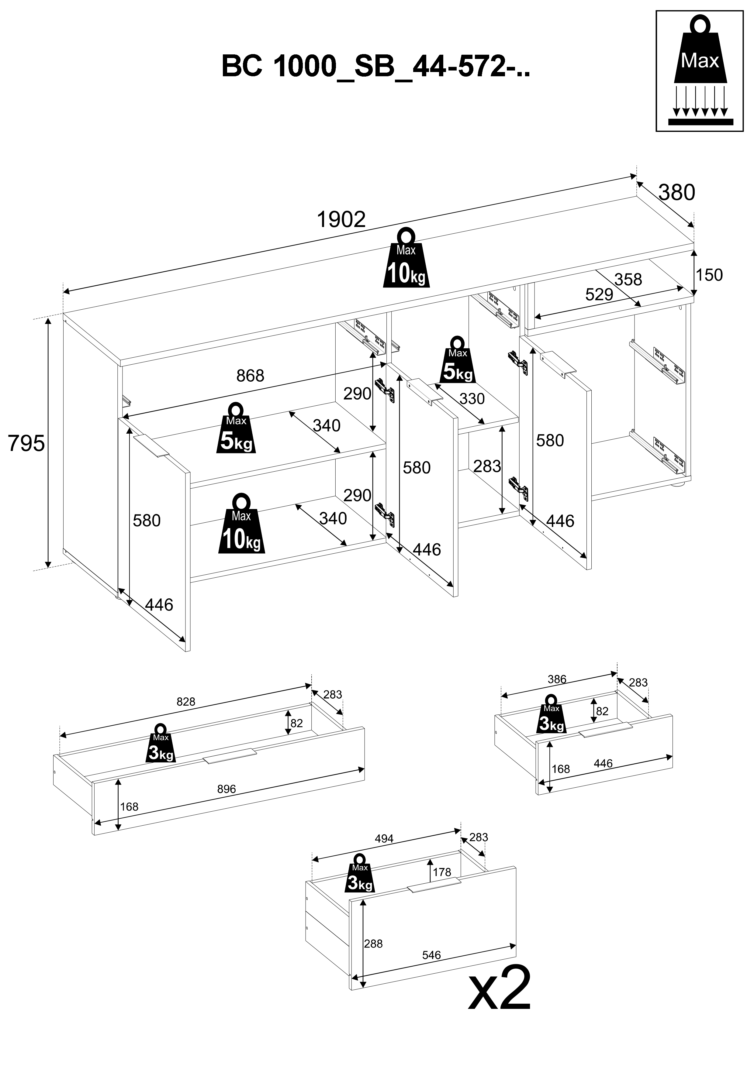 | Maße: | B/H/T ca. 190/80/38 cm | ||