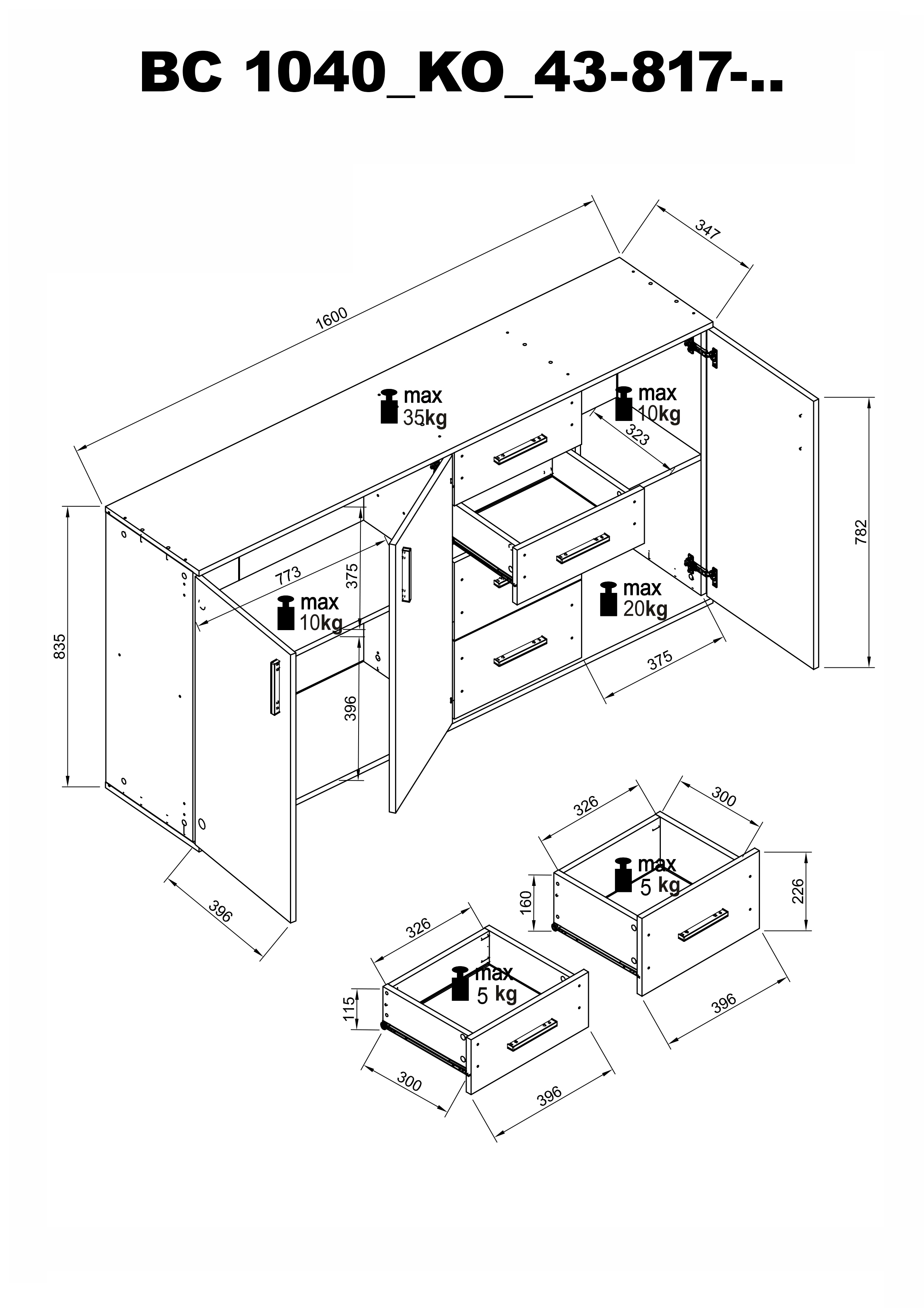 | Sideboard | 160 | 84 | 35 |