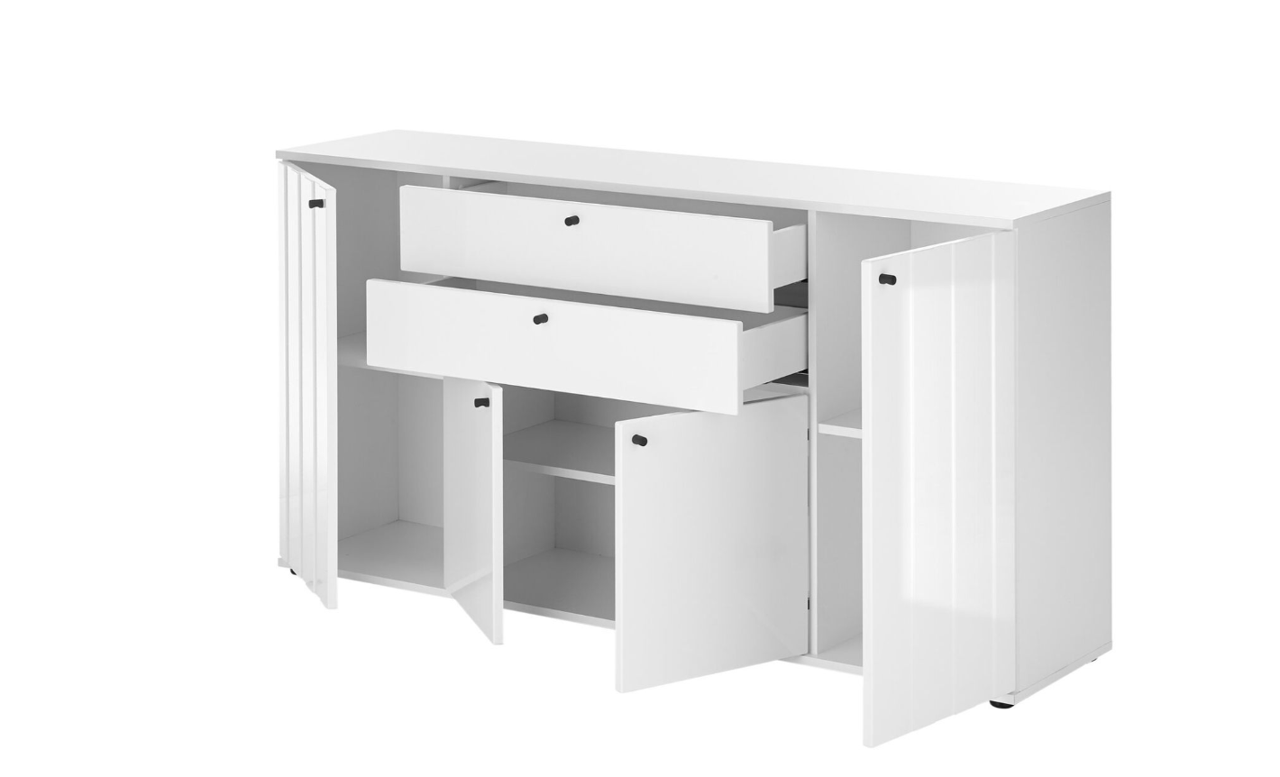 Front: Weiß Hochglanz Tiefzieh / MDF (Mitteldichte Holzfaserplatte)
