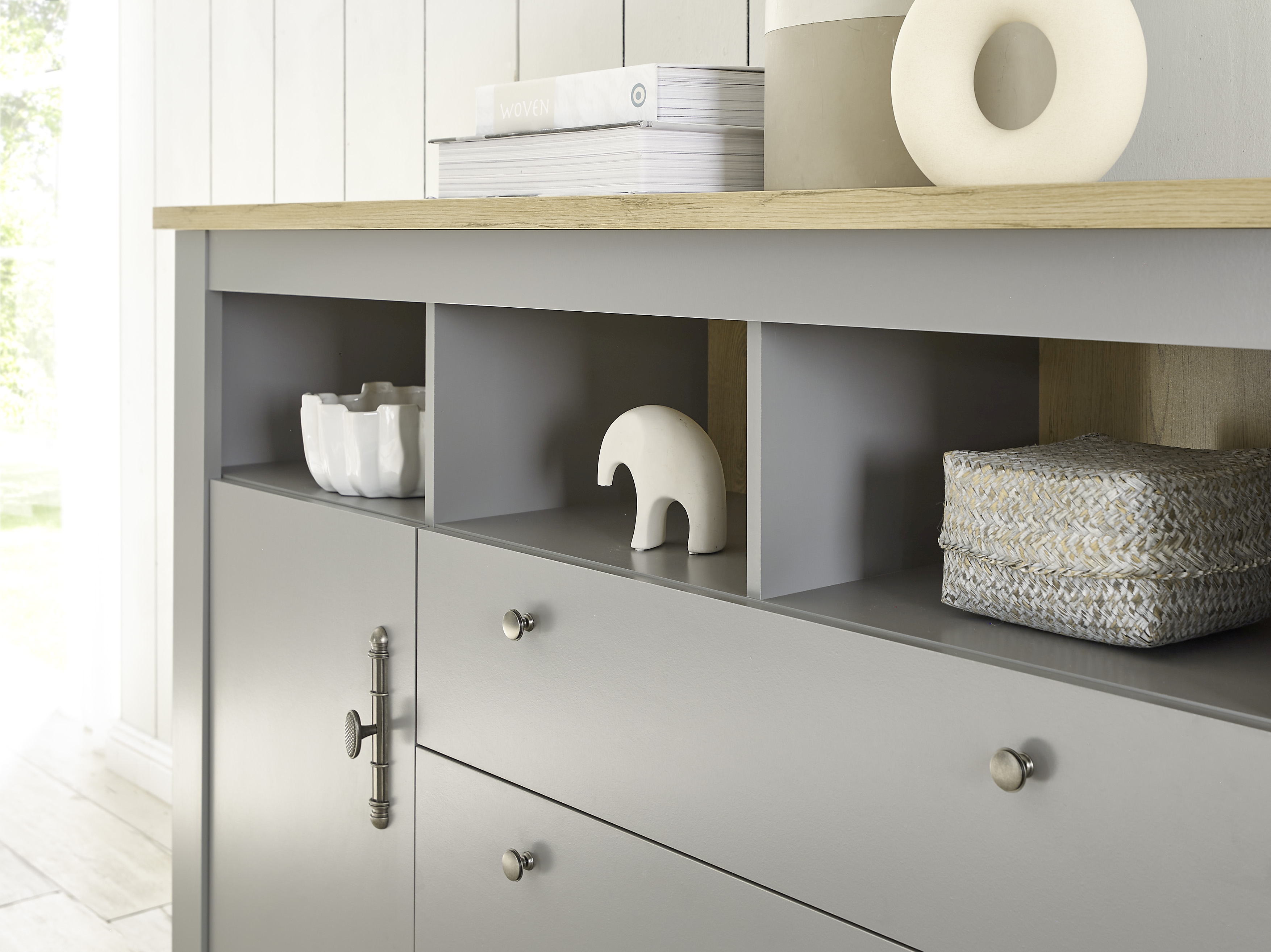 | Ausstattung Kommoden Phono Büro Regal: | Offene Fächer, Schublade(n), Türe(n) | ||