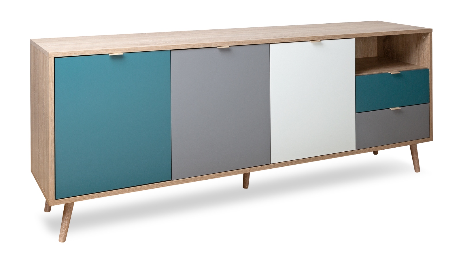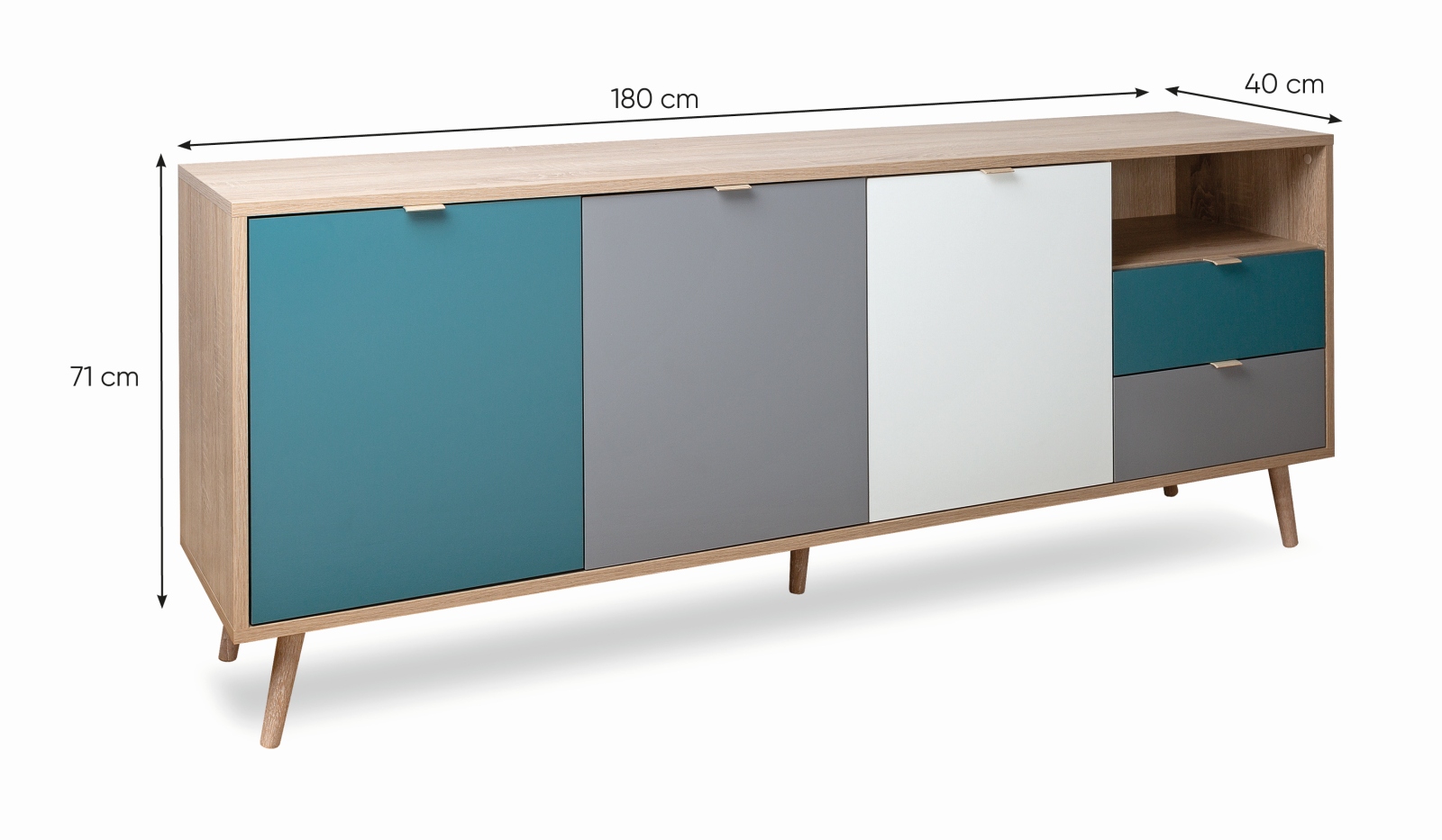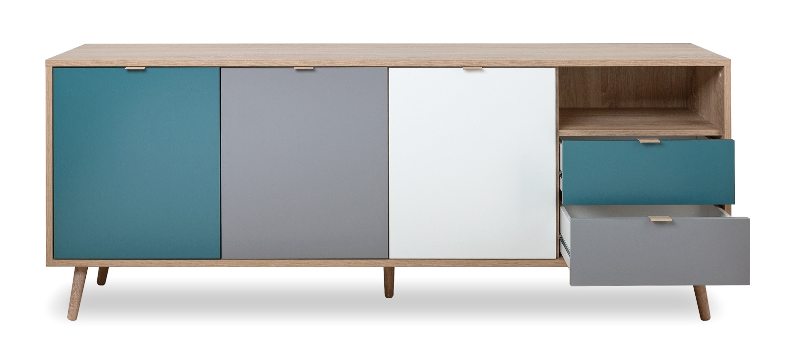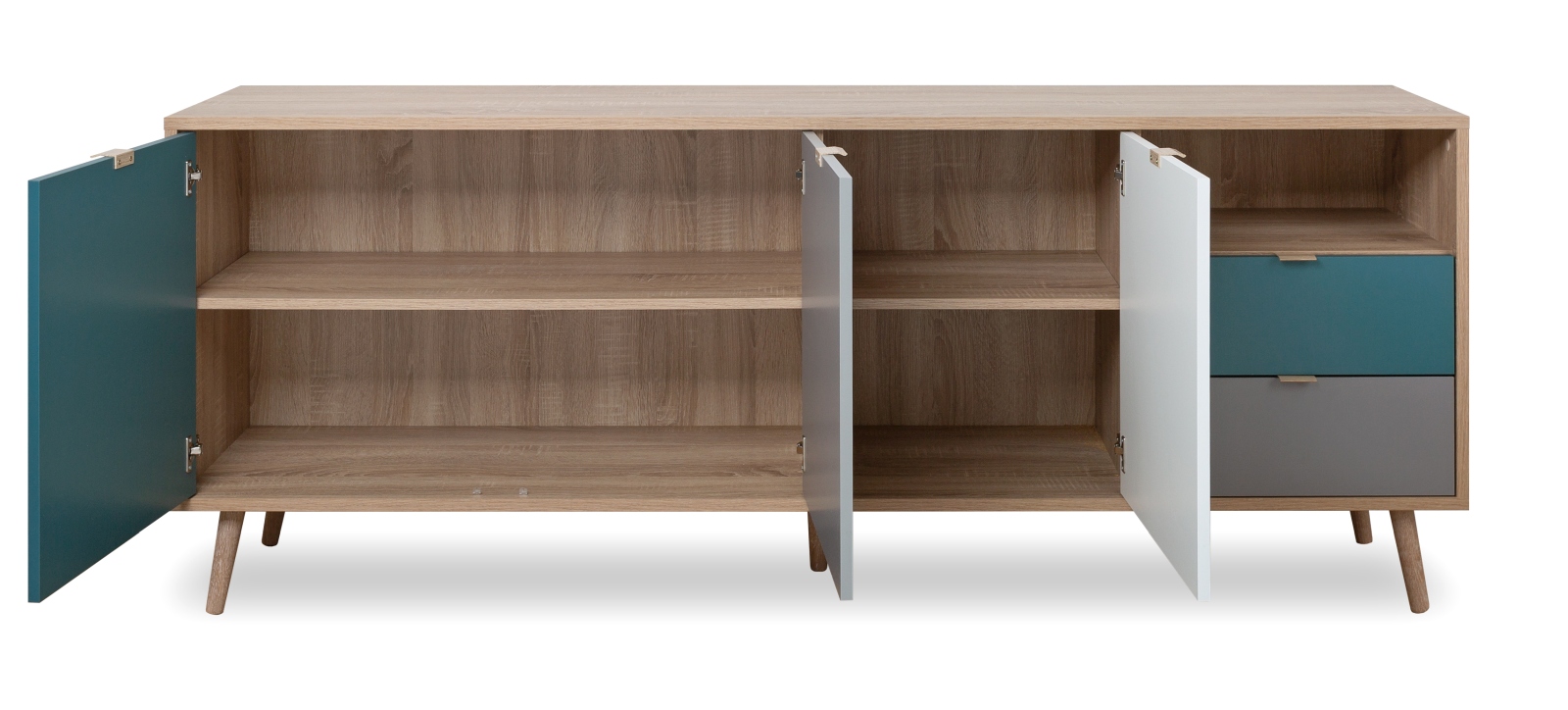 Front: Eiche Sonoma Holznachbildung / Weiß / Petrol / Grau