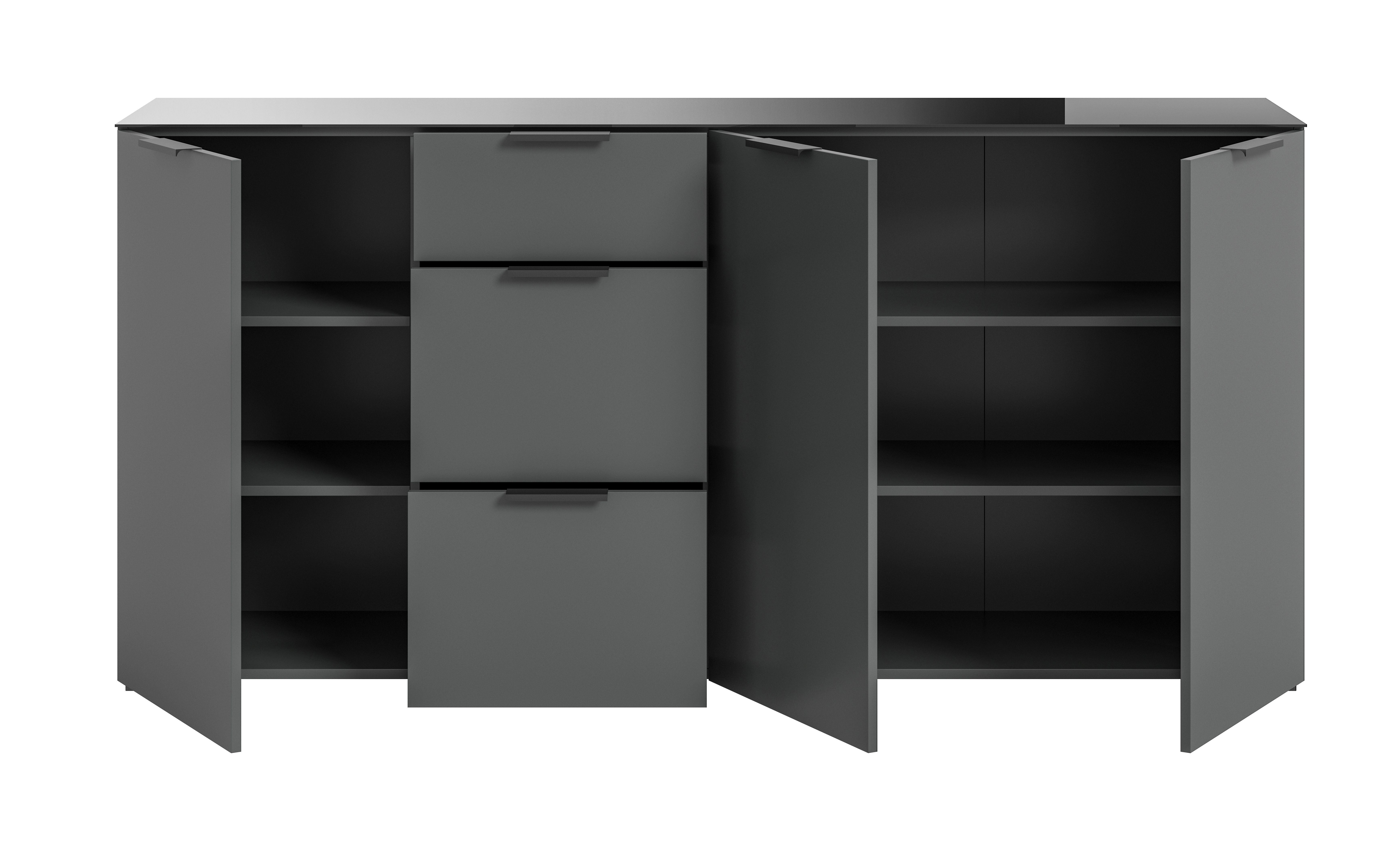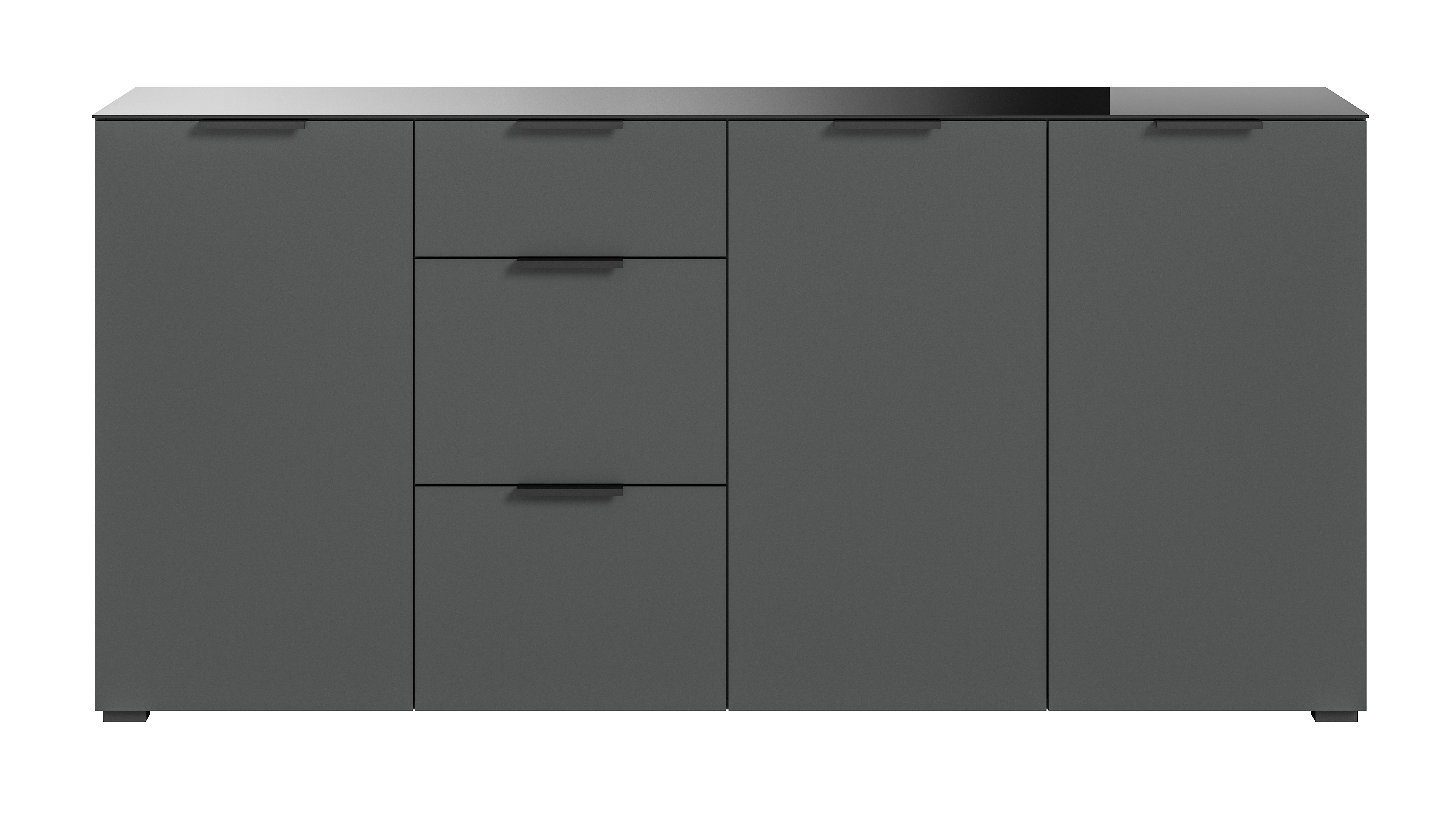 Bringe mit unserem eleganten Sideboard in Anthrazit-Nachbildung mit Glasabsetzung Stil und Organisation in dein Zuhause. Mit den großzügigen Maßen bietet sie nicht nur ausreichend Stauraum für deine persönlichen Gegenstände, sondern verleiht auch deinem Raum eine moderne Note. Erlebe Funktionalität und Ästhetik vereint in dieser hochwertigen Kommode für dein Zuhause.