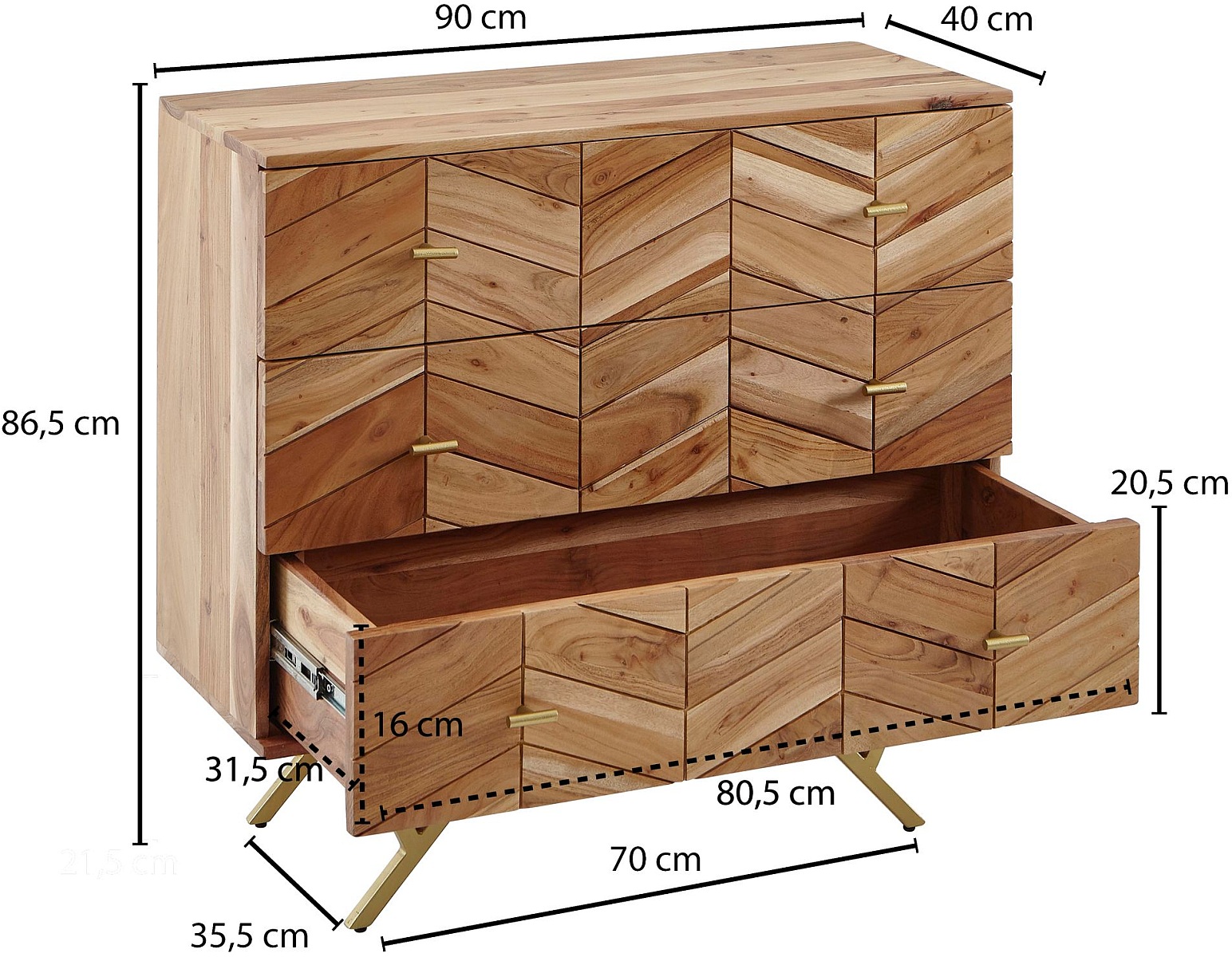 ABMESSUNGEN ✔ Breite: 90 cm // Höhe: 86,5 cm // Tiefe: 40 cm // Innenabmessungen je Schublade (BxHxT): 80,5 x 16 x 31,5 cm // Weitere Abmessungen finden im Maßbild.