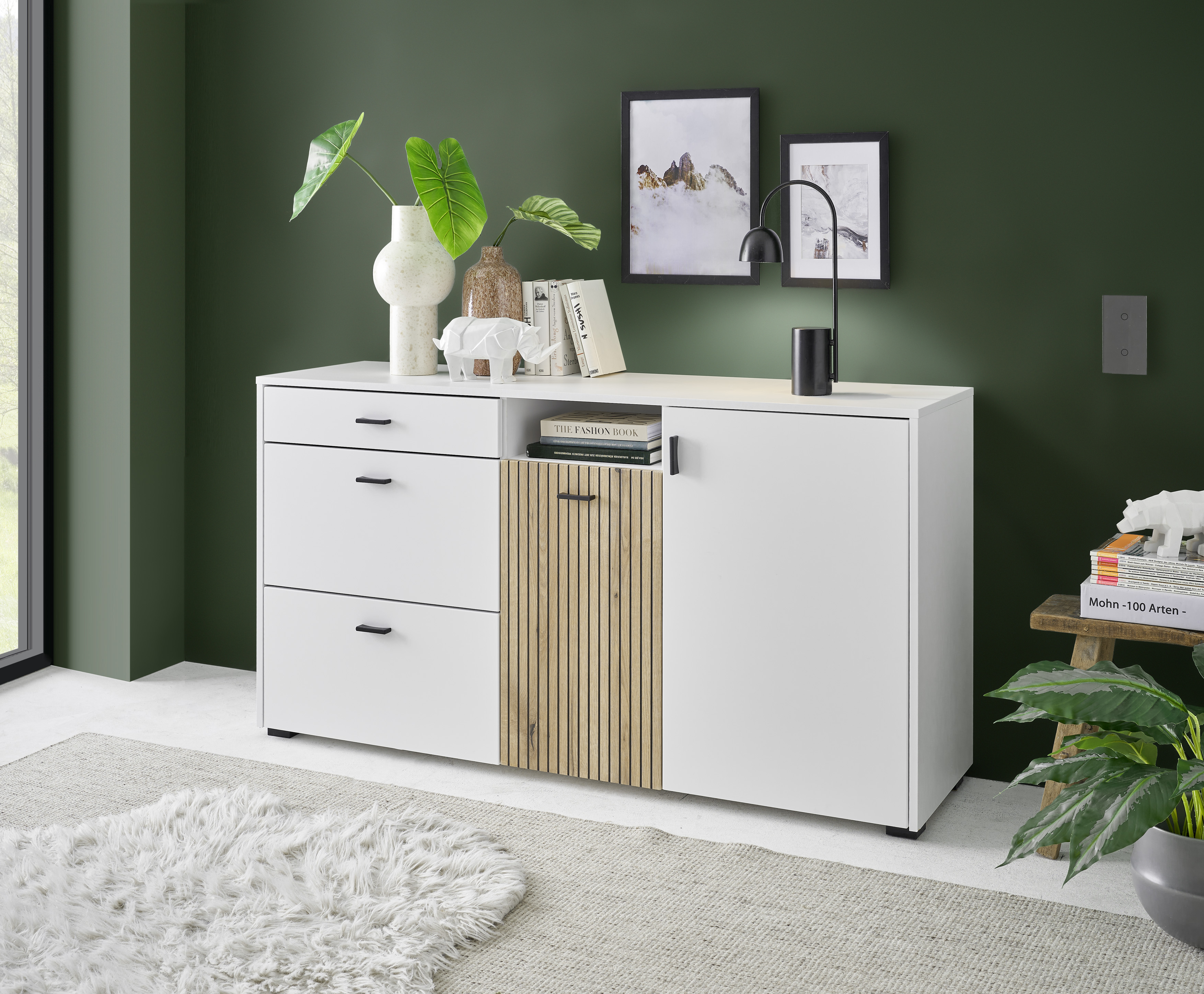 | Ausstattung Kommoden Phono Büro Regal: | Offene Fächer, Schublade(n), Türe(n) | ||