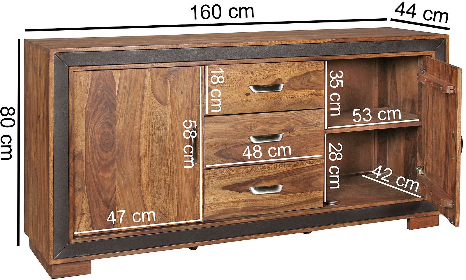 - FARBE ✔ Sideboard ist braun mit eindrucksvoller Maßerung // Streifen aus Kunstleder in schwarz abgesetzt